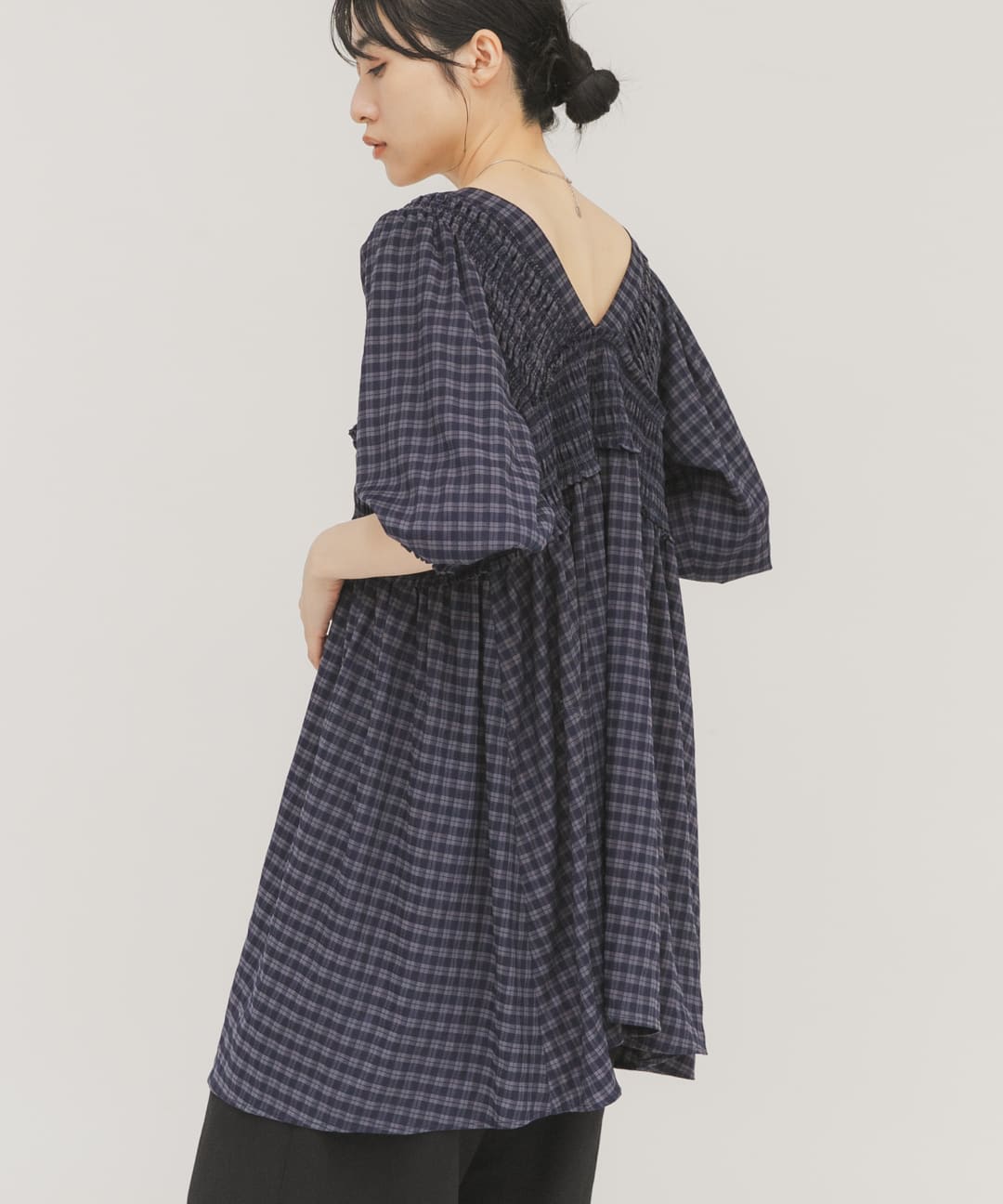 KBF2WAYシャーリングチェックミニワンピース- カラー: