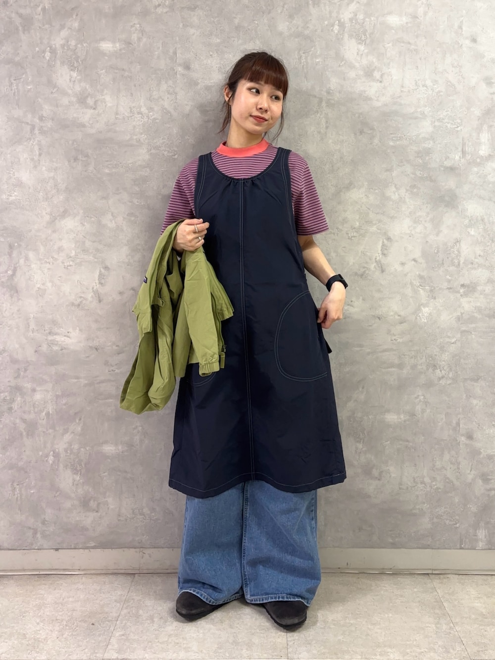 ナイロン素材なので軽くさっと重ねるだけで、これからの時期レイヤードし放題の万能アイテム。