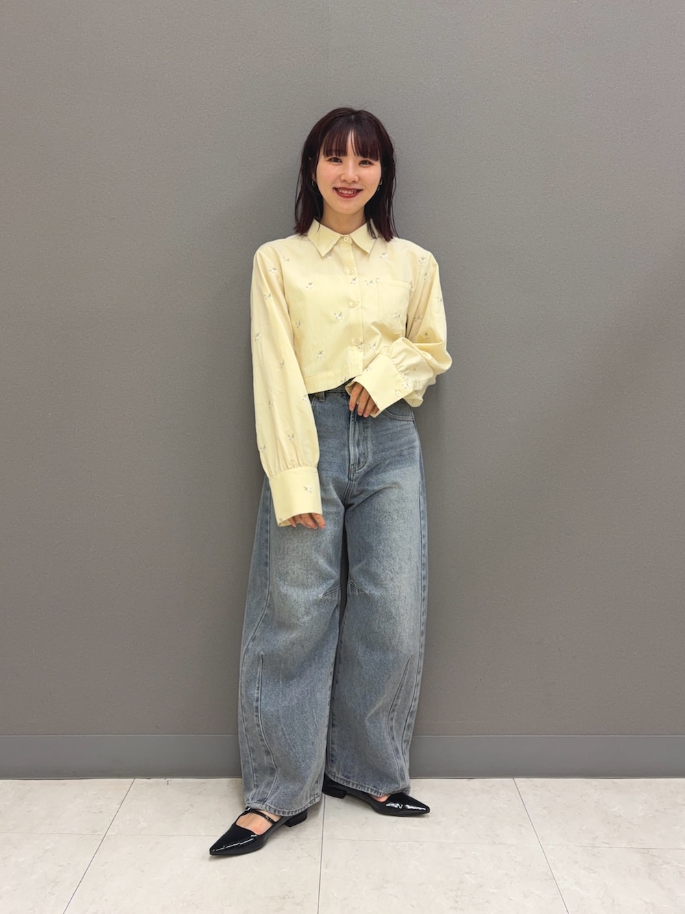 フラワーエンブロイダリークロップドシャツ