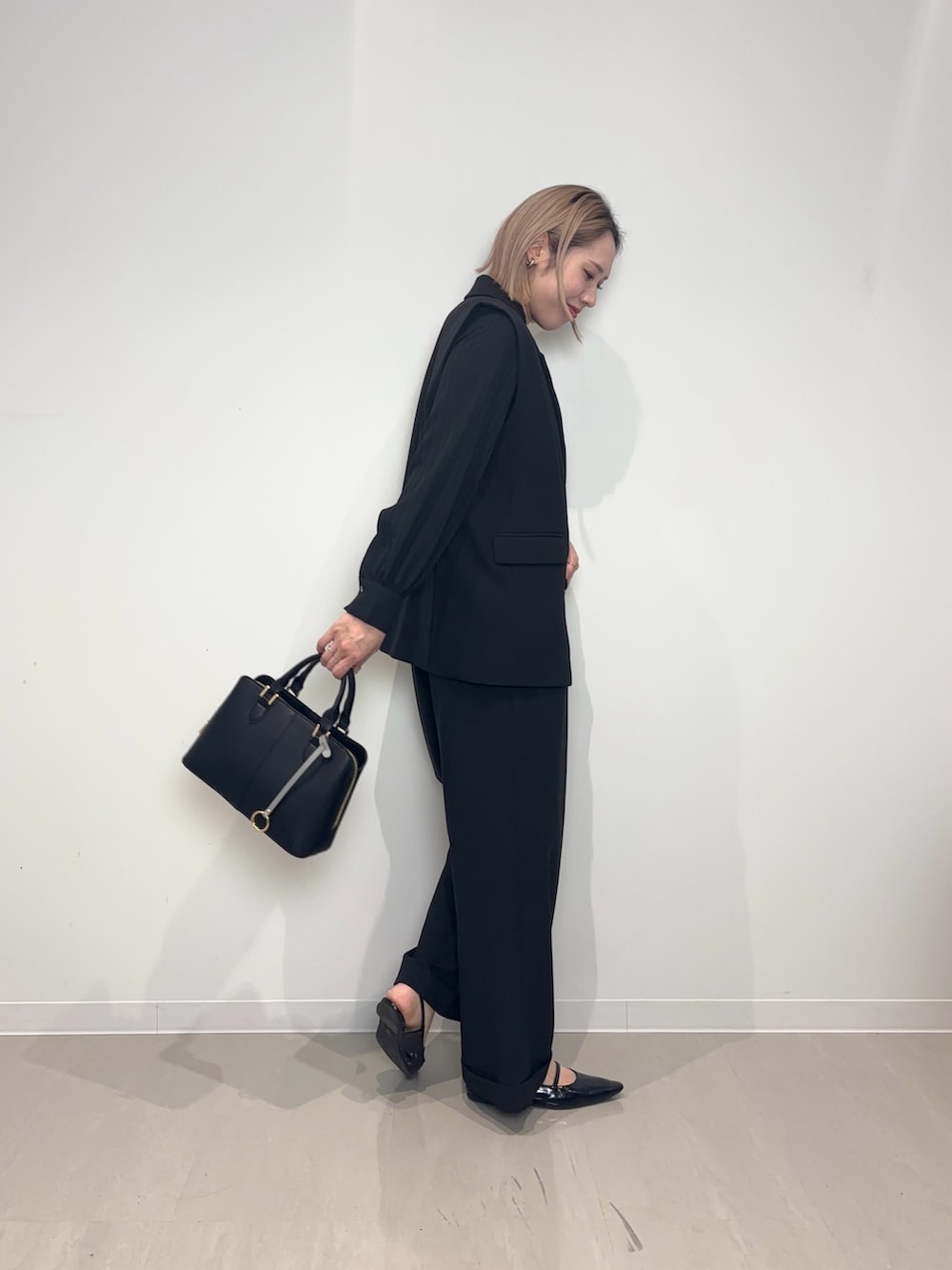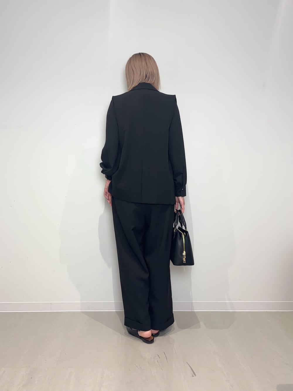 オールインワンにジレを重ねております!オンオフ活躍してくれるデザインで、ストレッチが効いているのでストレスなく着用頂けます♪長めの着丈が落ち着いた雰囲気を演出してくれます。同素材のパンツもご用意があるのでセットアップもおすすめです☆