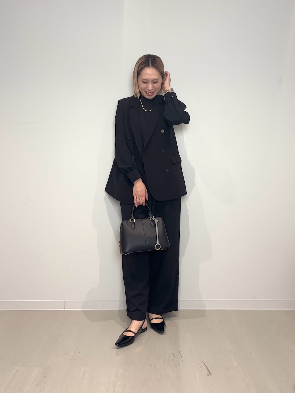 シルエットがとにかく綺麗なオールインワンです。少しワイドなシルエットでウエストマークできるのでメリハリがつきます!締め付けもなく楽な着心地、シワも出来にくいので気軽に着用できます!◎
