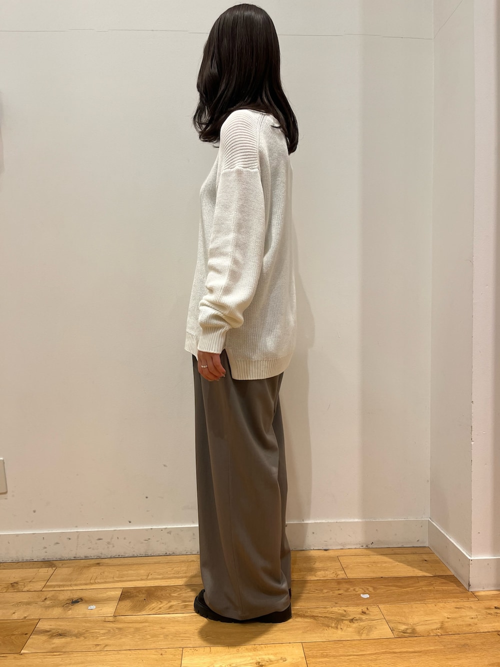 ボートネックになっていて抜け感のあるシルエットになっています