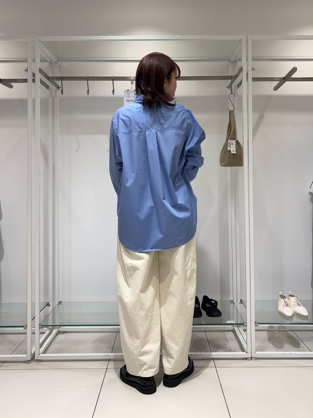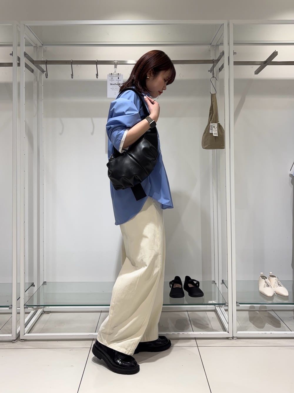 今年っぽいバレルレッグデニムにさらっとシャツを合わせて、ラフだけどトレンドを押さえたおすすめスタイリング。