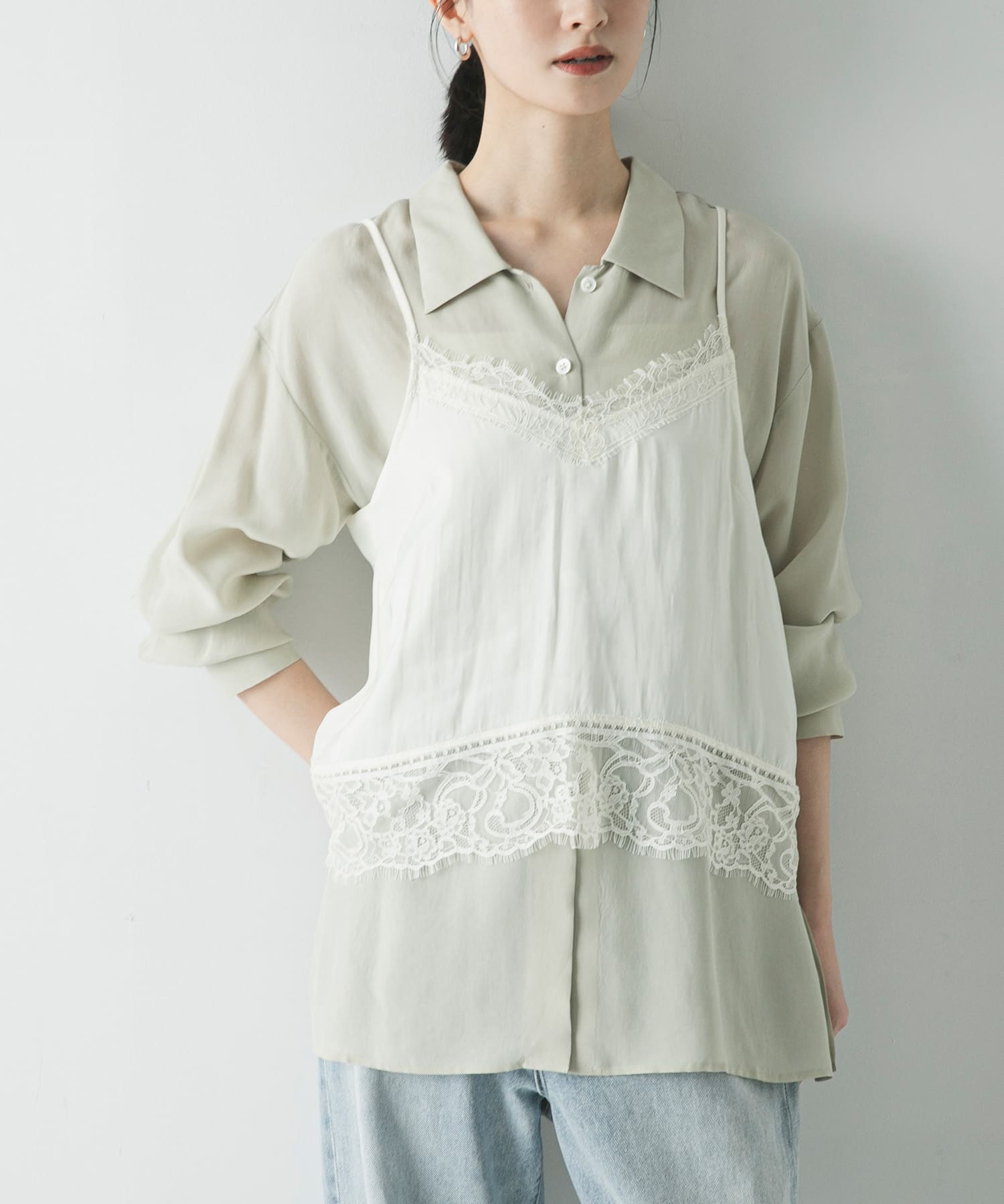 インナーにはサテンブラウスとレースキャミソール🔅💛