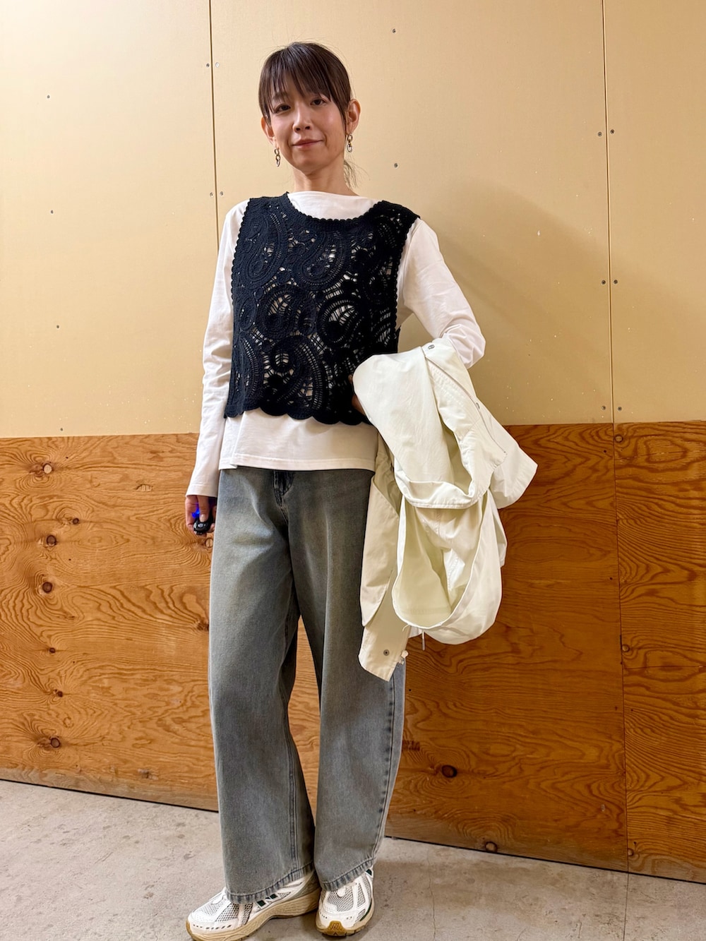 ✔︎デニムパンツはラインを拾わないシルエットなので、どなたにも合わせやすいです。