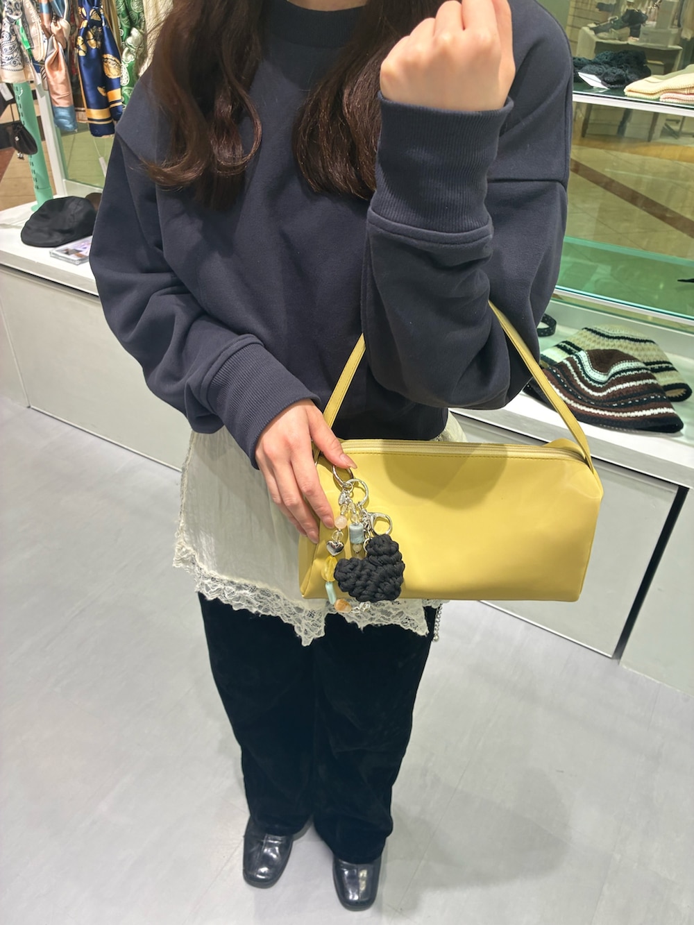 シャイニースクエアバッグに人気のクリアビーズモチーフキーチェーンをつけてみました💛🌟