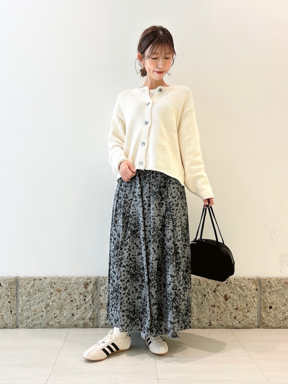 トップスはショート丈にゆるっとシルエットが可愛いカーディガン。