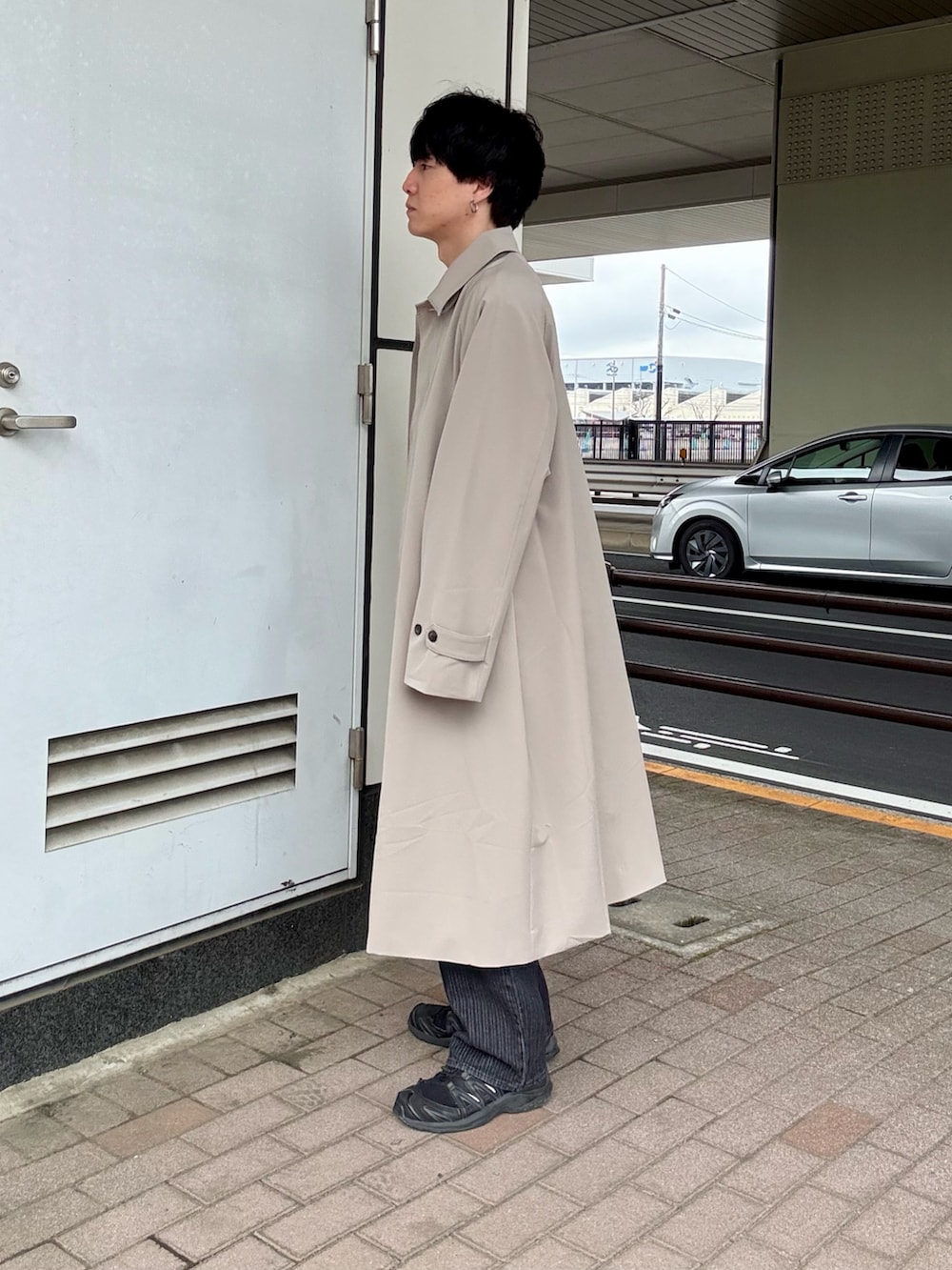 春らしいカラーでルーズ感のあるロングコートで、生地感も程よく薄いので長い間着用出来ます◎