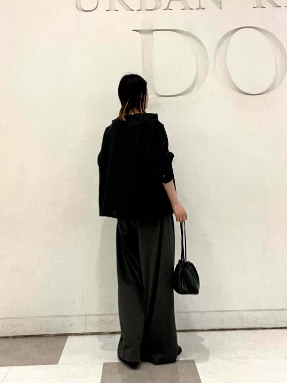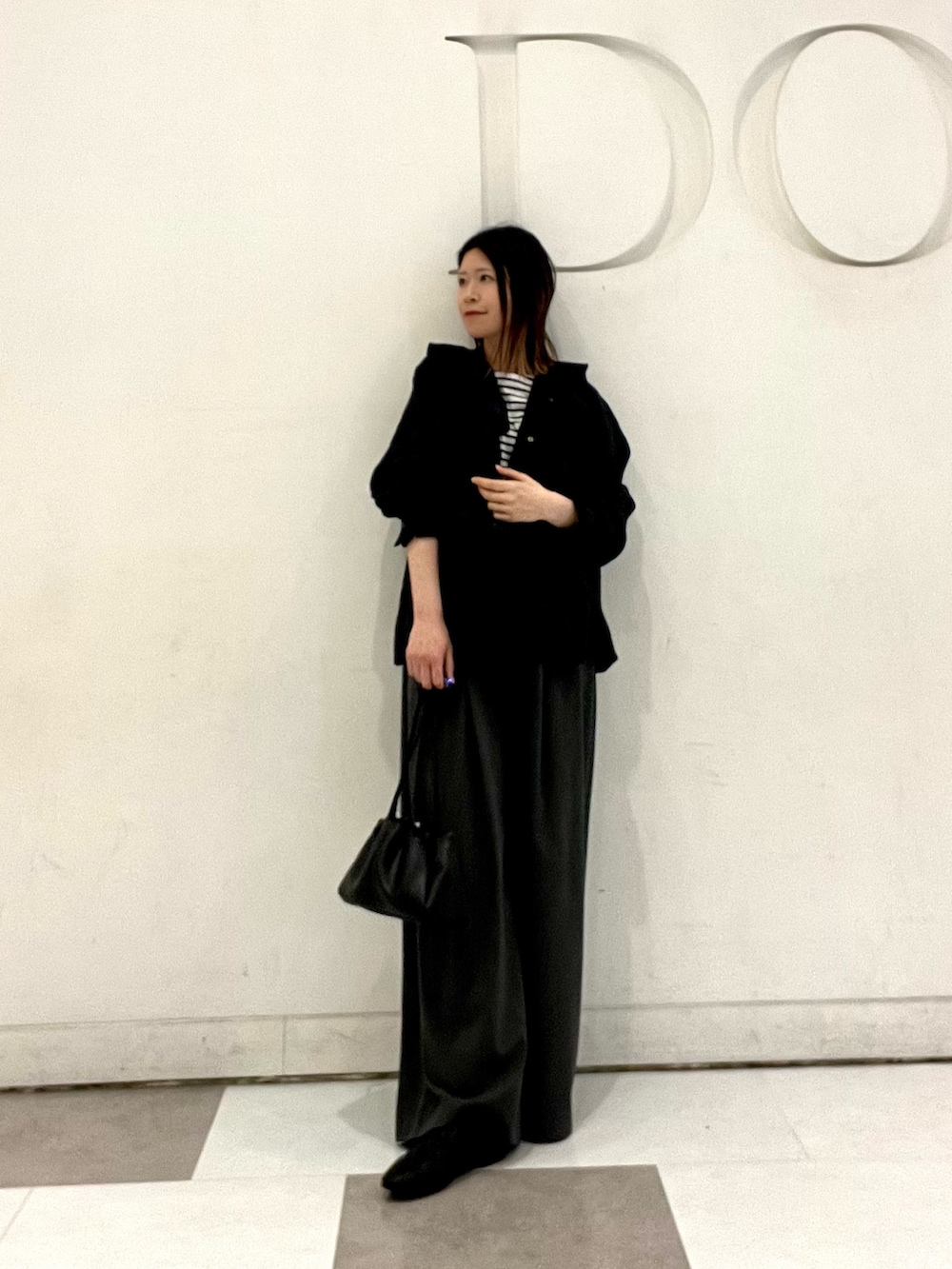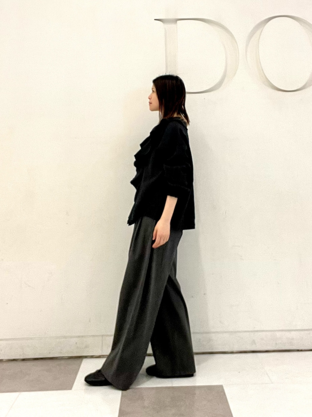 襟から前立てにたっぷりと入ったフリルが可愛いブラウスはリネン100%で柔らかな肌触りです!チクチク感じることなく着用できました!
