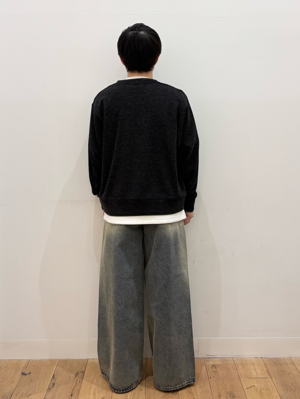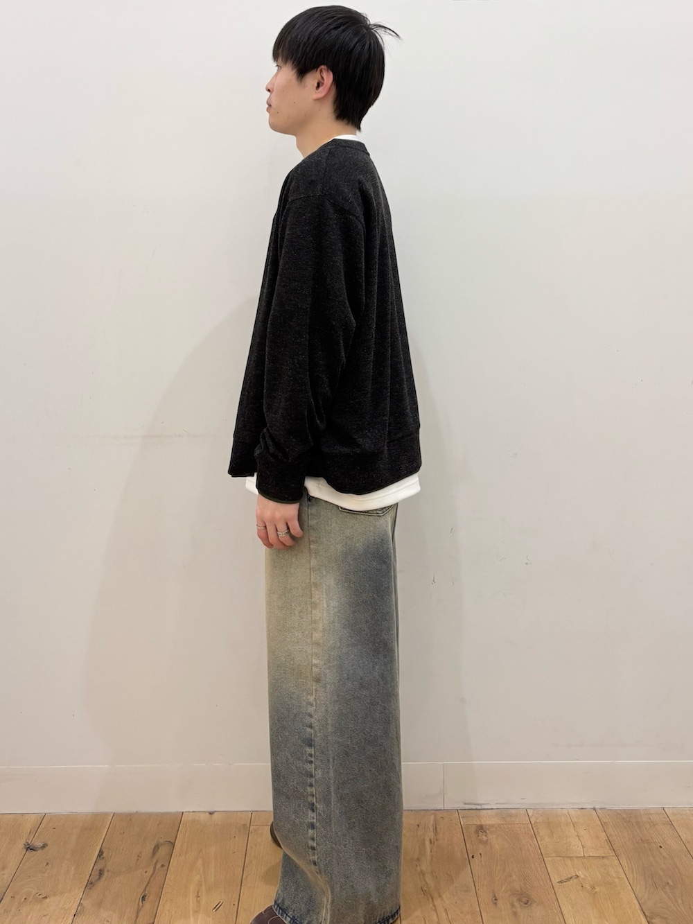 パンツは、カーディガンやシャツなど多くのコーデに組み合わせやすいヴィンテージデニムを合わせました。