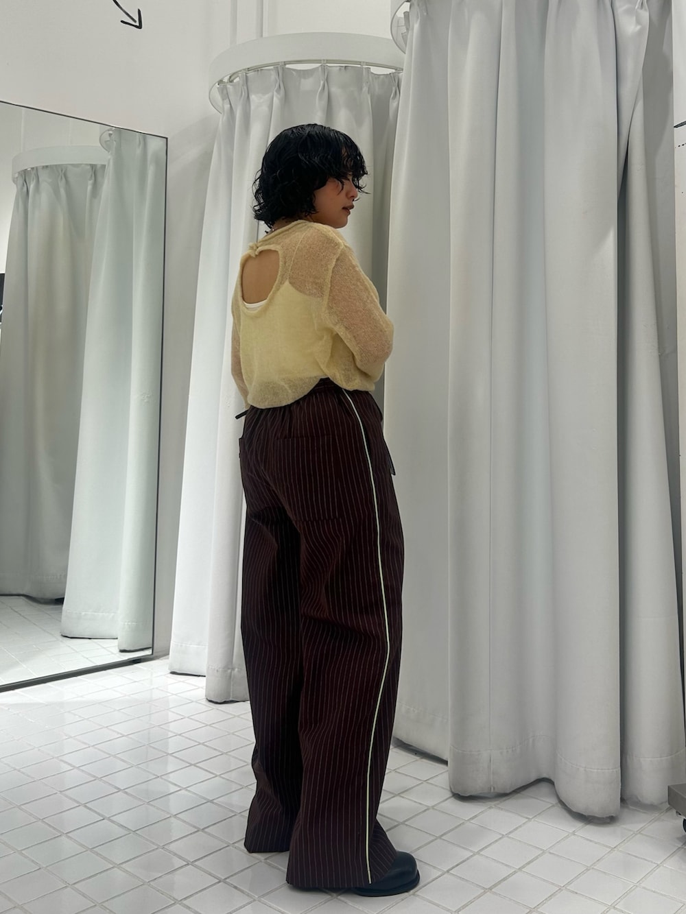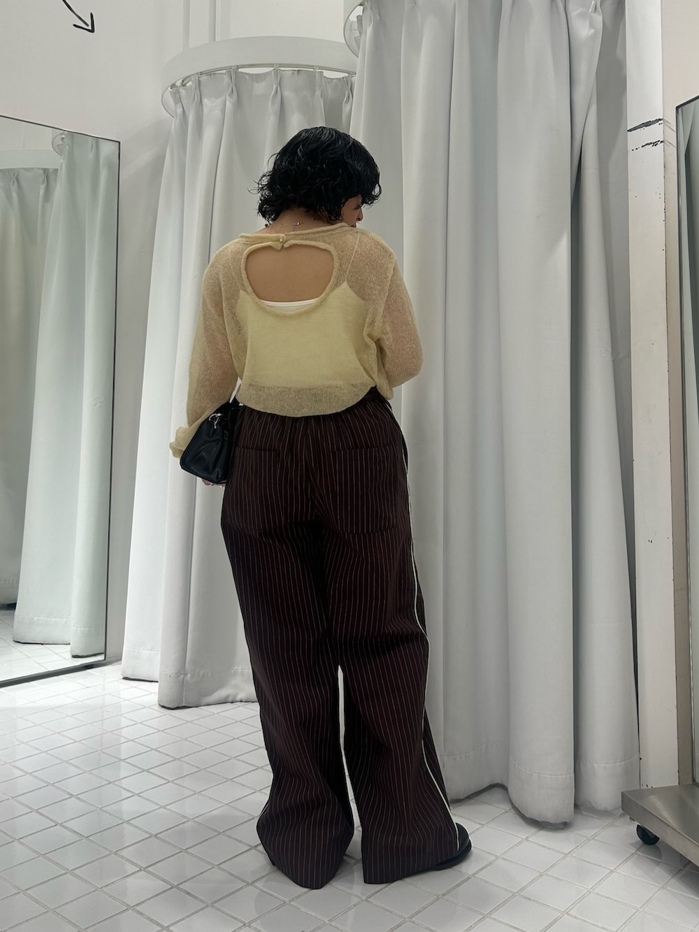 シアーニットにゆるっとパンツで女性らしいコーディネートにしました!