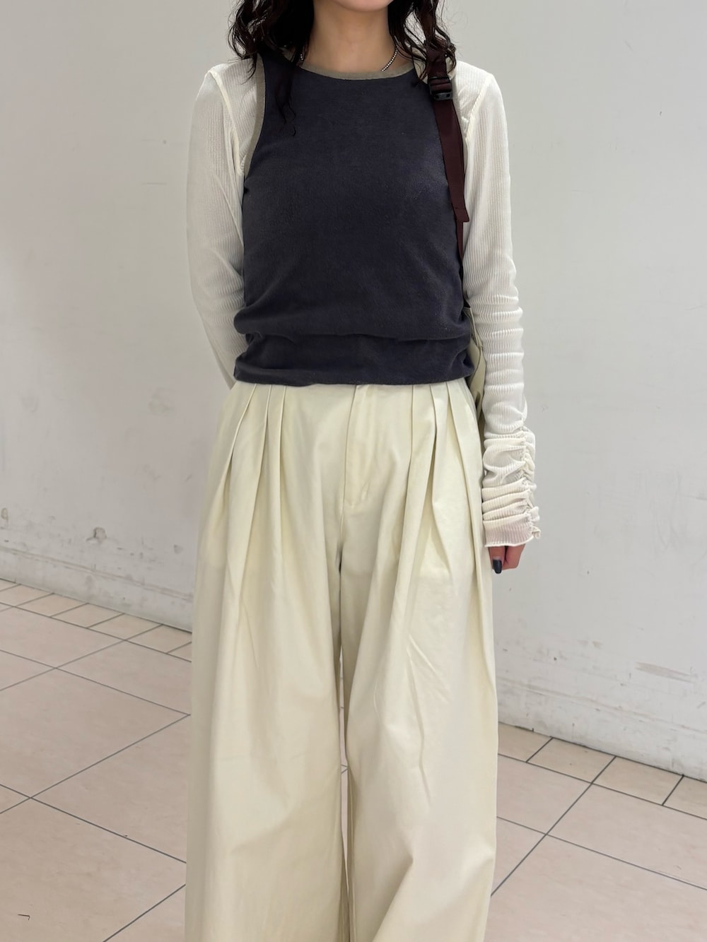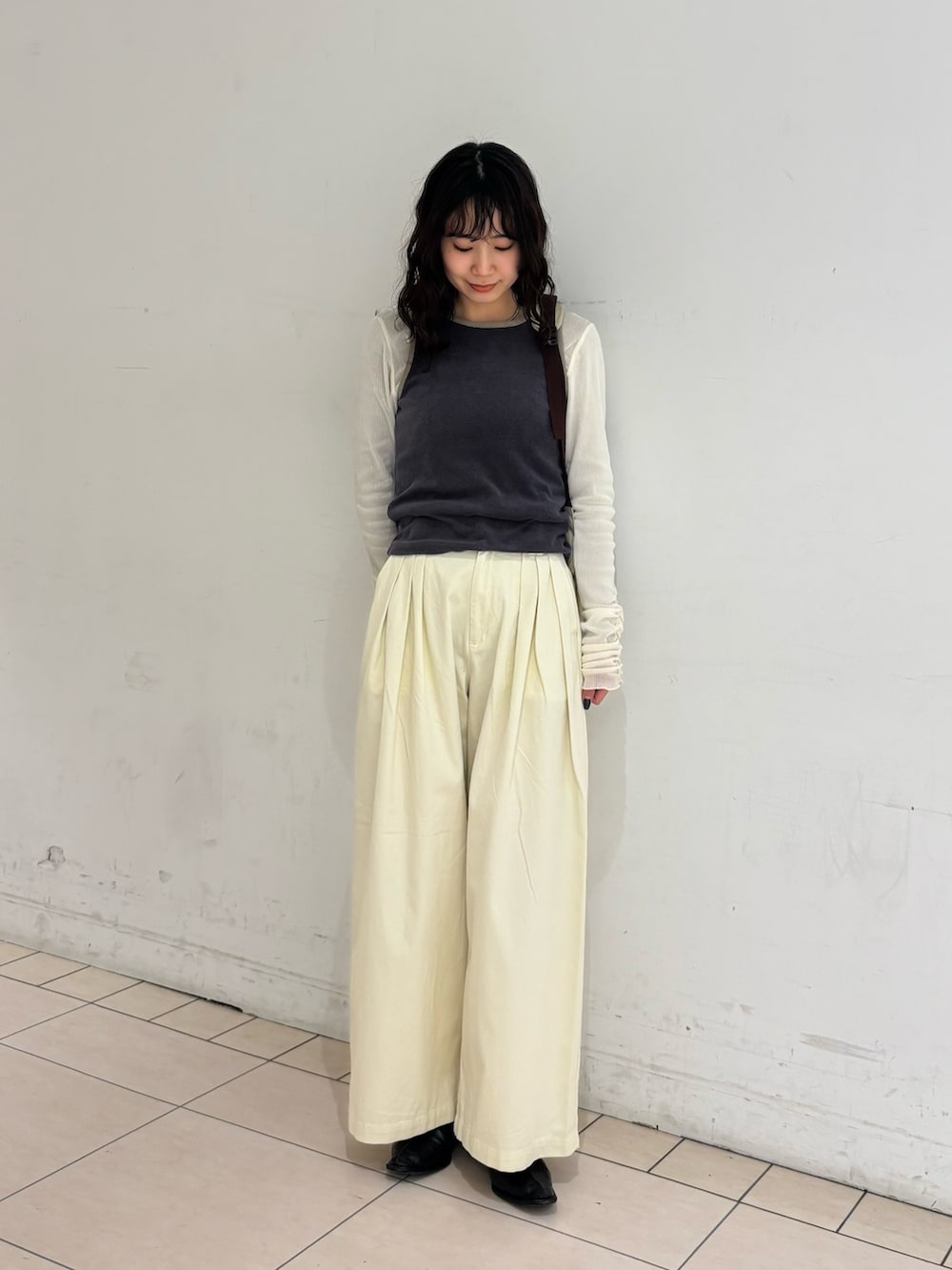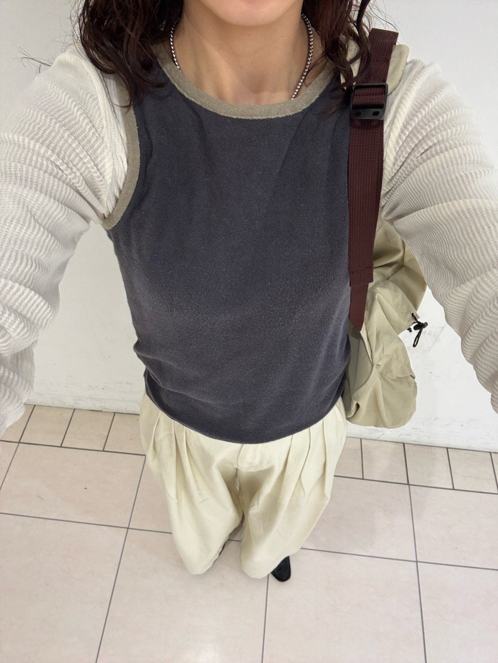 タンクトップは薄手のインナーとレイヤードして主役として着るのもおすすめです🤍