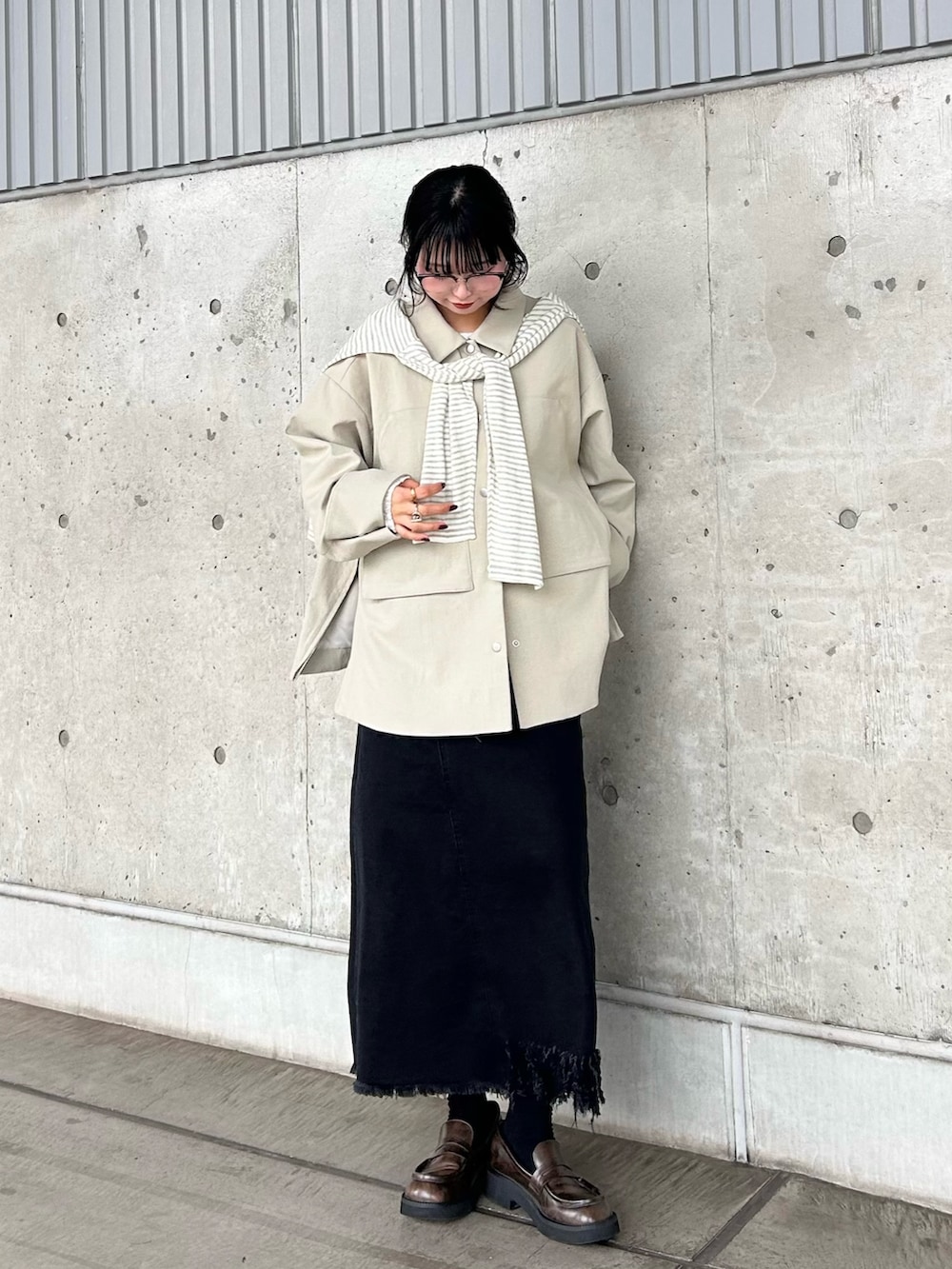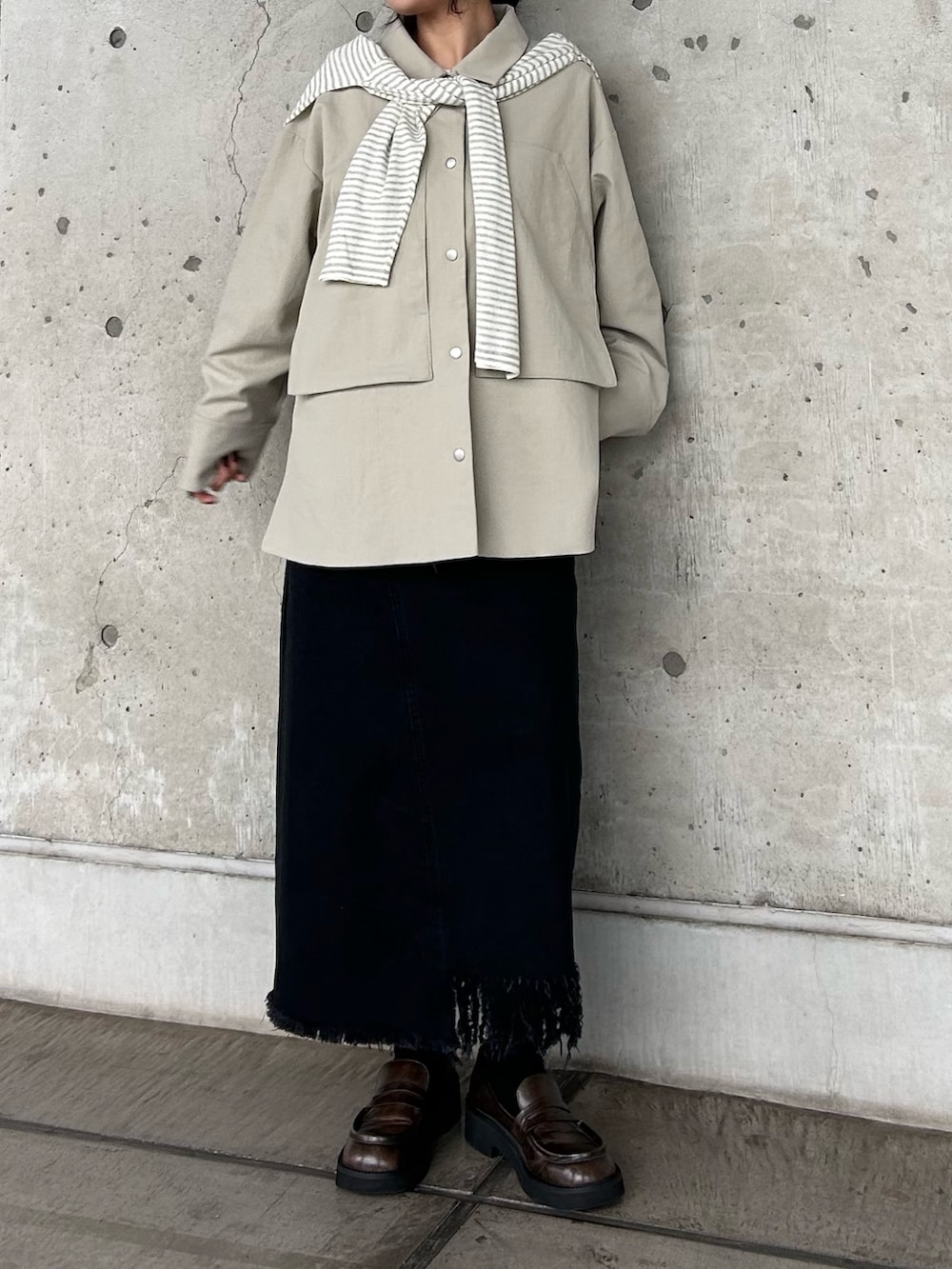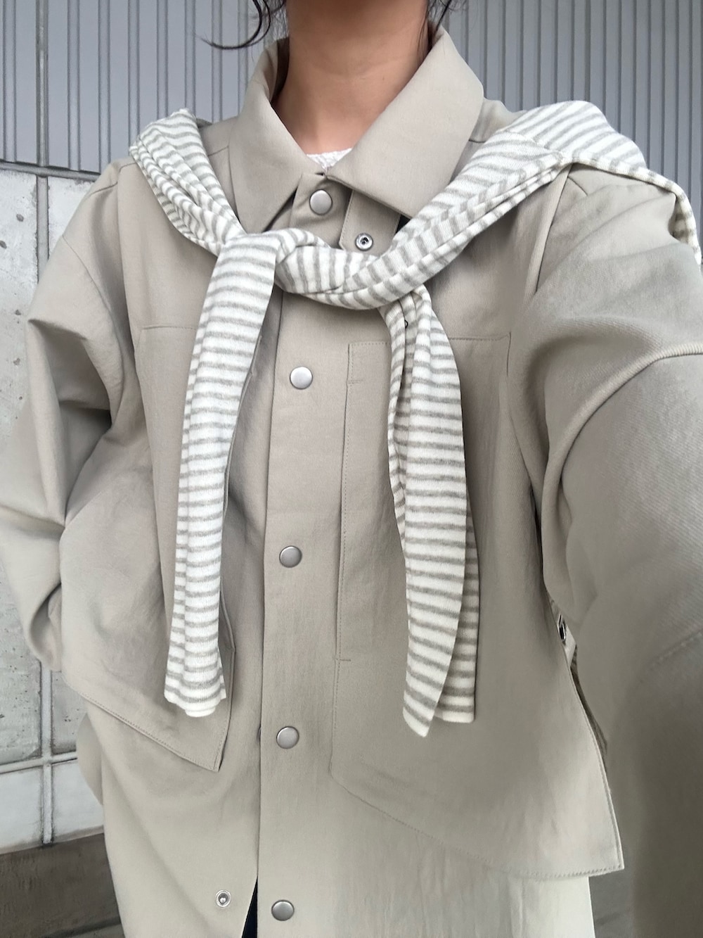 ボーダーのトップスをジャケットに巻いてワンポイントプラスしてみました✨