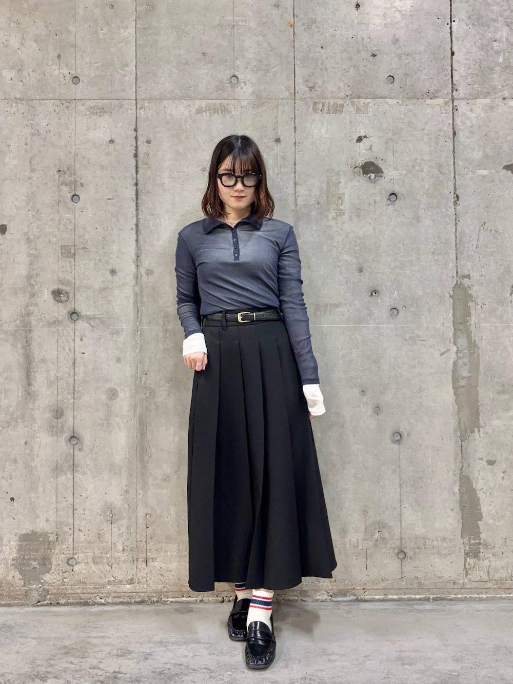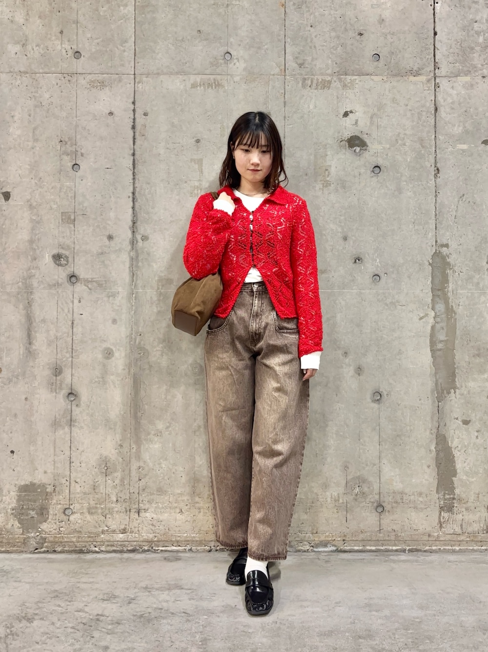 ブラウスにはシンプルすぎずのドット柄、上からはカーディガンを羽織温度調節バッチリです👍🏻