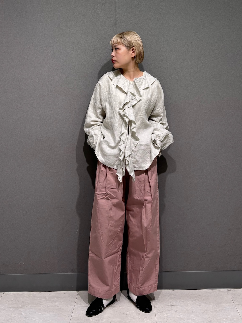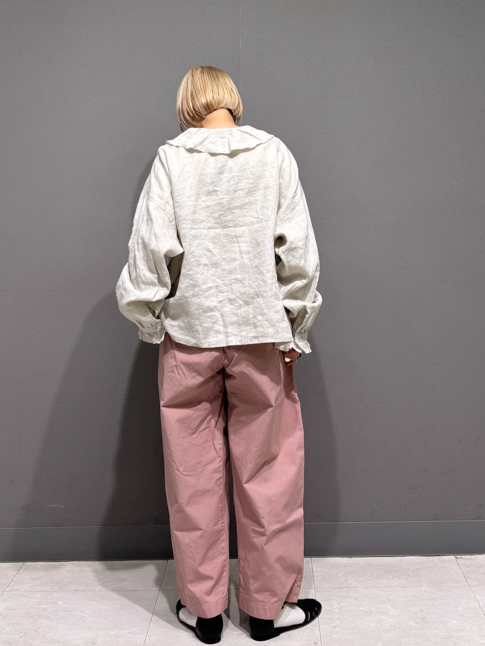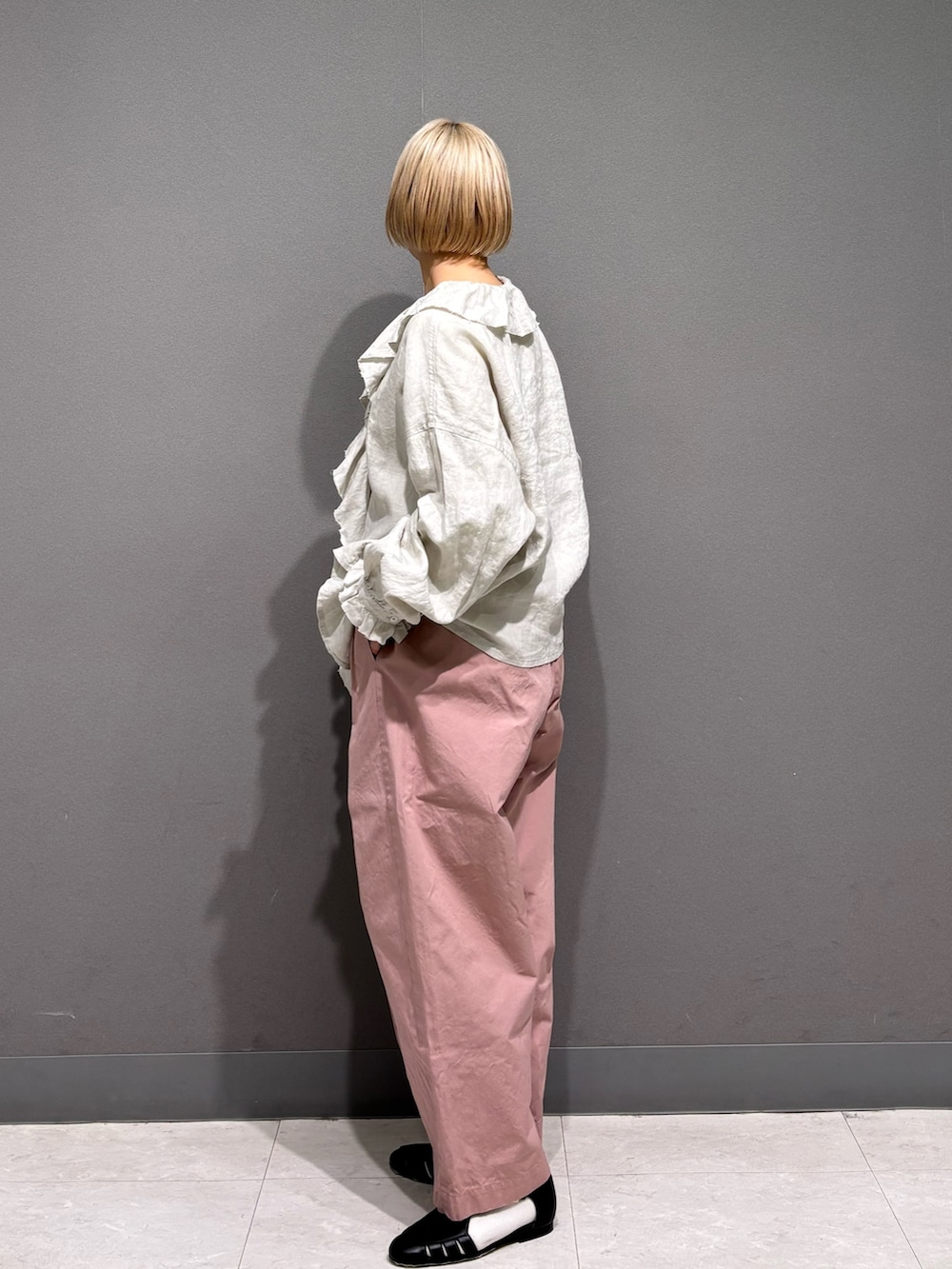 フリルカラーのブラウスをリネン素材で。