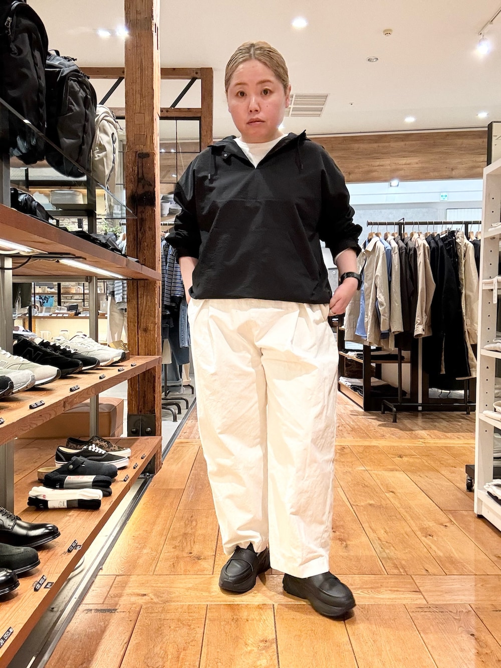 かぐれのコットンテーパードイージーパンツを合わせました👏