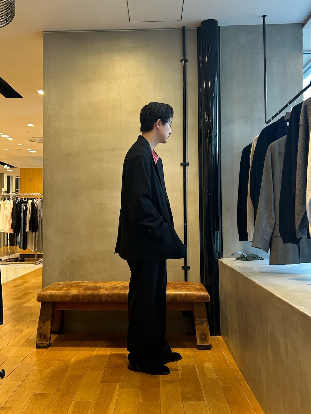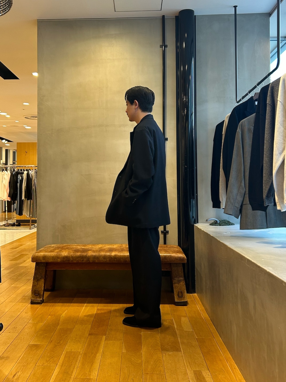 new basicの新作ジャケットセットアップでのスタイリングです。