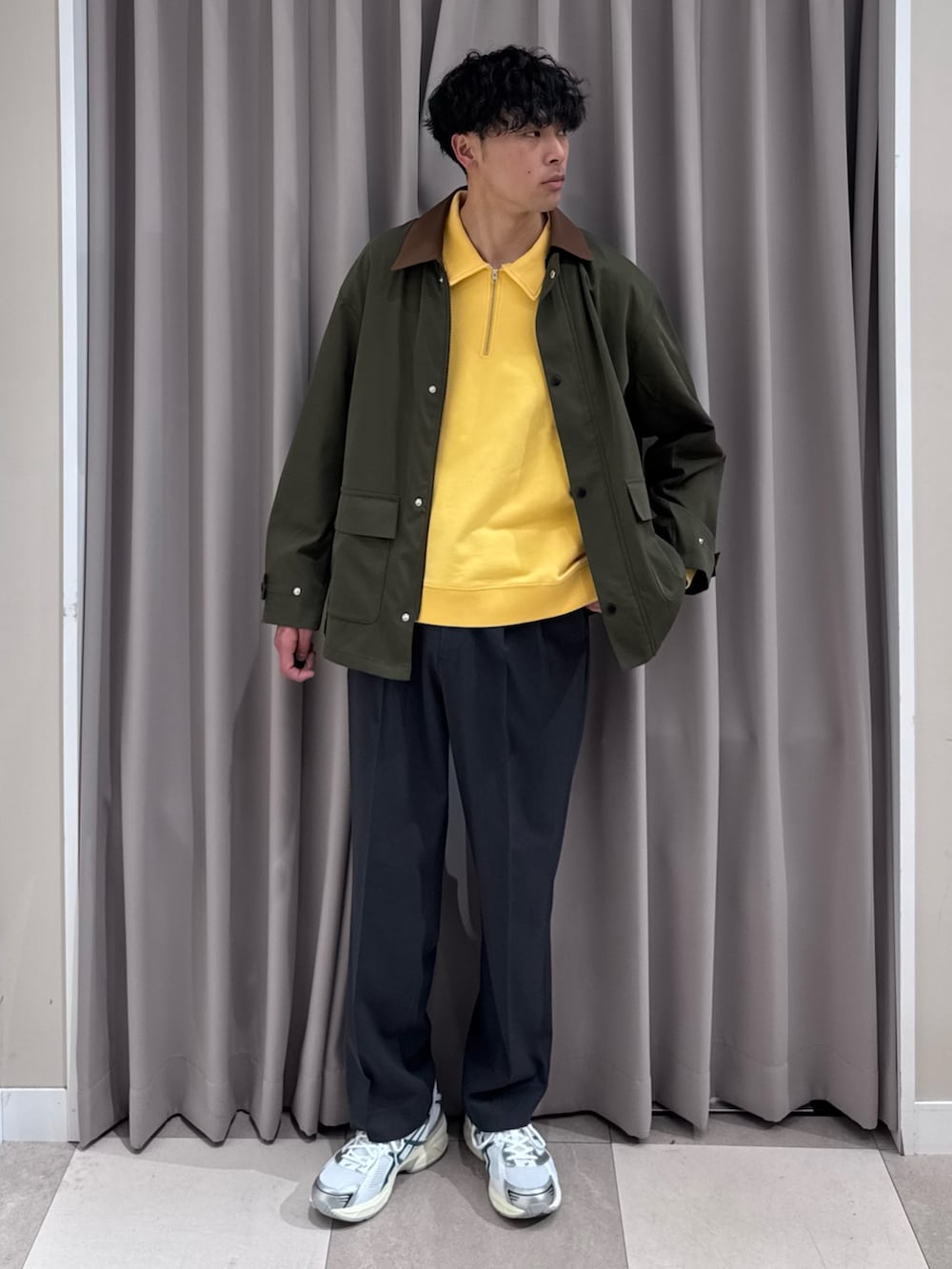 インナーには春らしいイエローカラーのスウェットを。