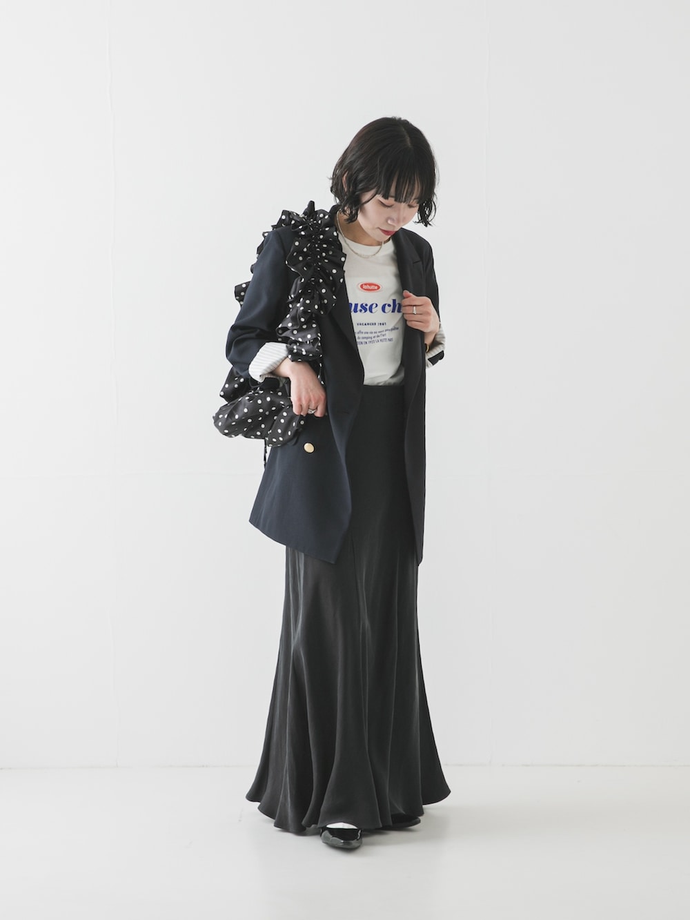 腕周りや身幅はすっきりめなので、小柄な方も合わせていただきやすいサイズ感です◎