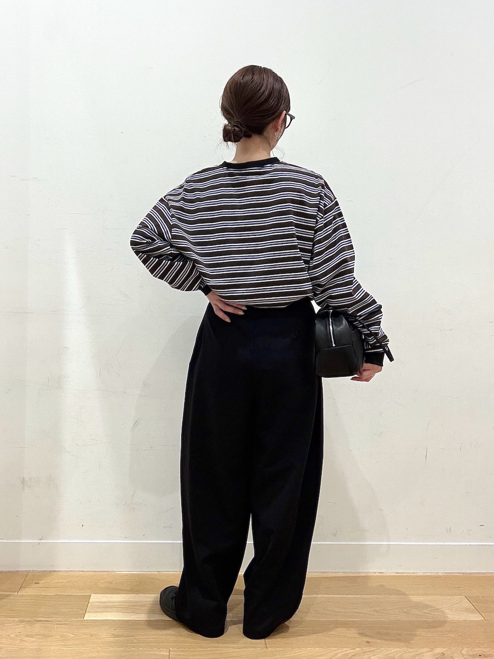 黒小物を合わせて、カジュアルすぎない大人のボーダースタイルに。