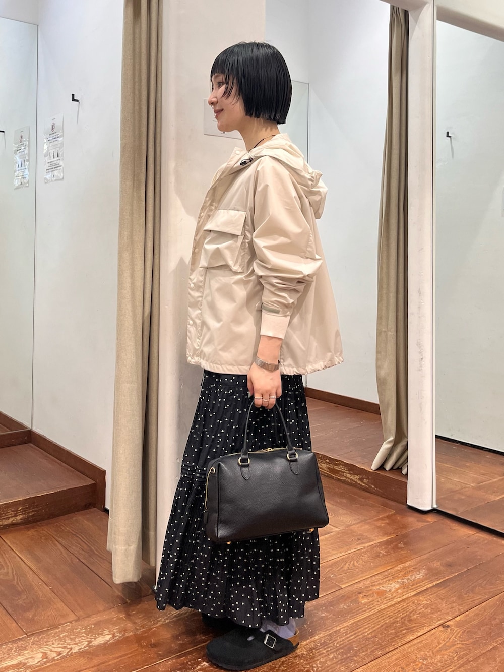 カジュアルなマウンテンパーカとのバランスもいいですね🫧