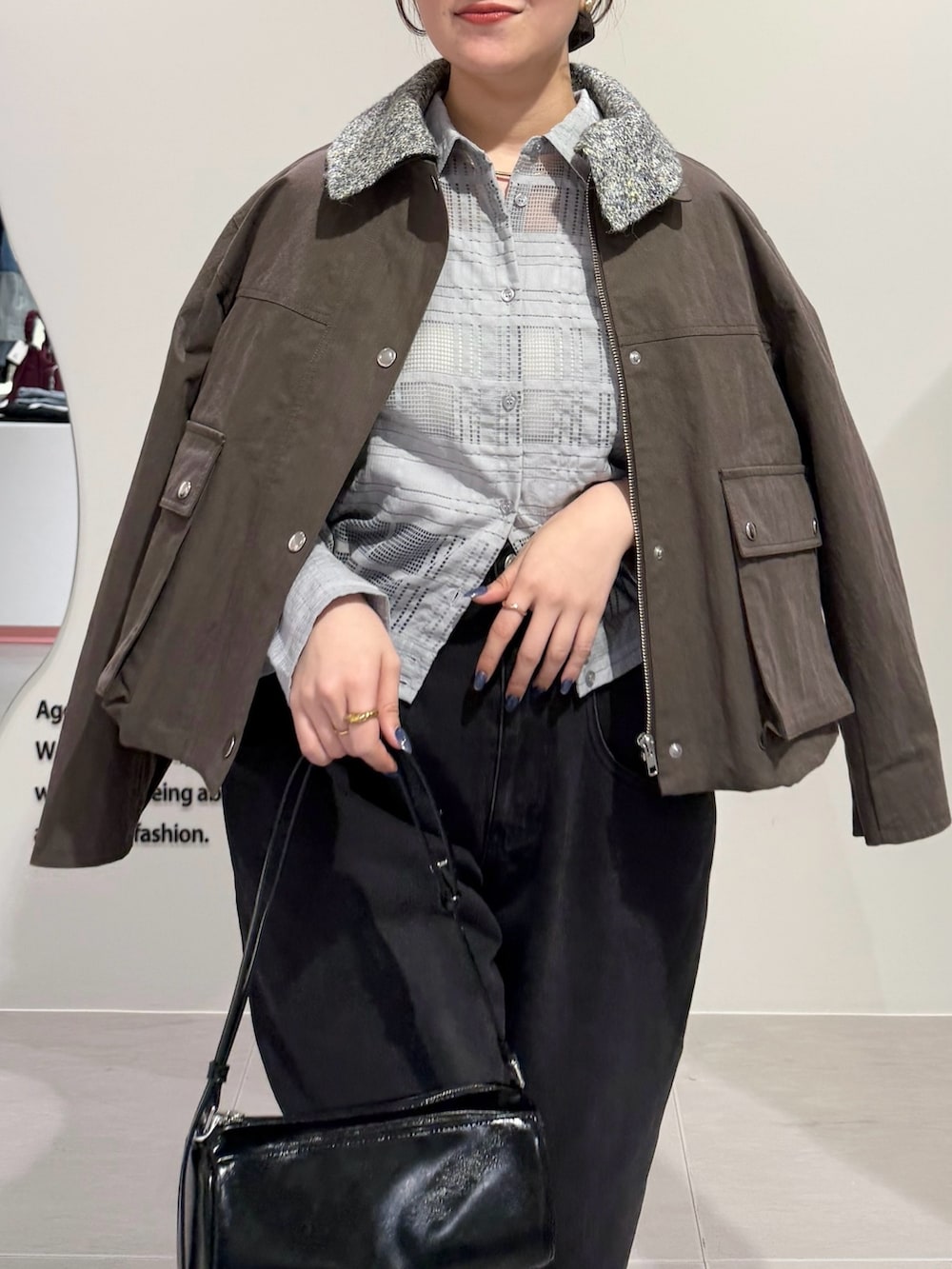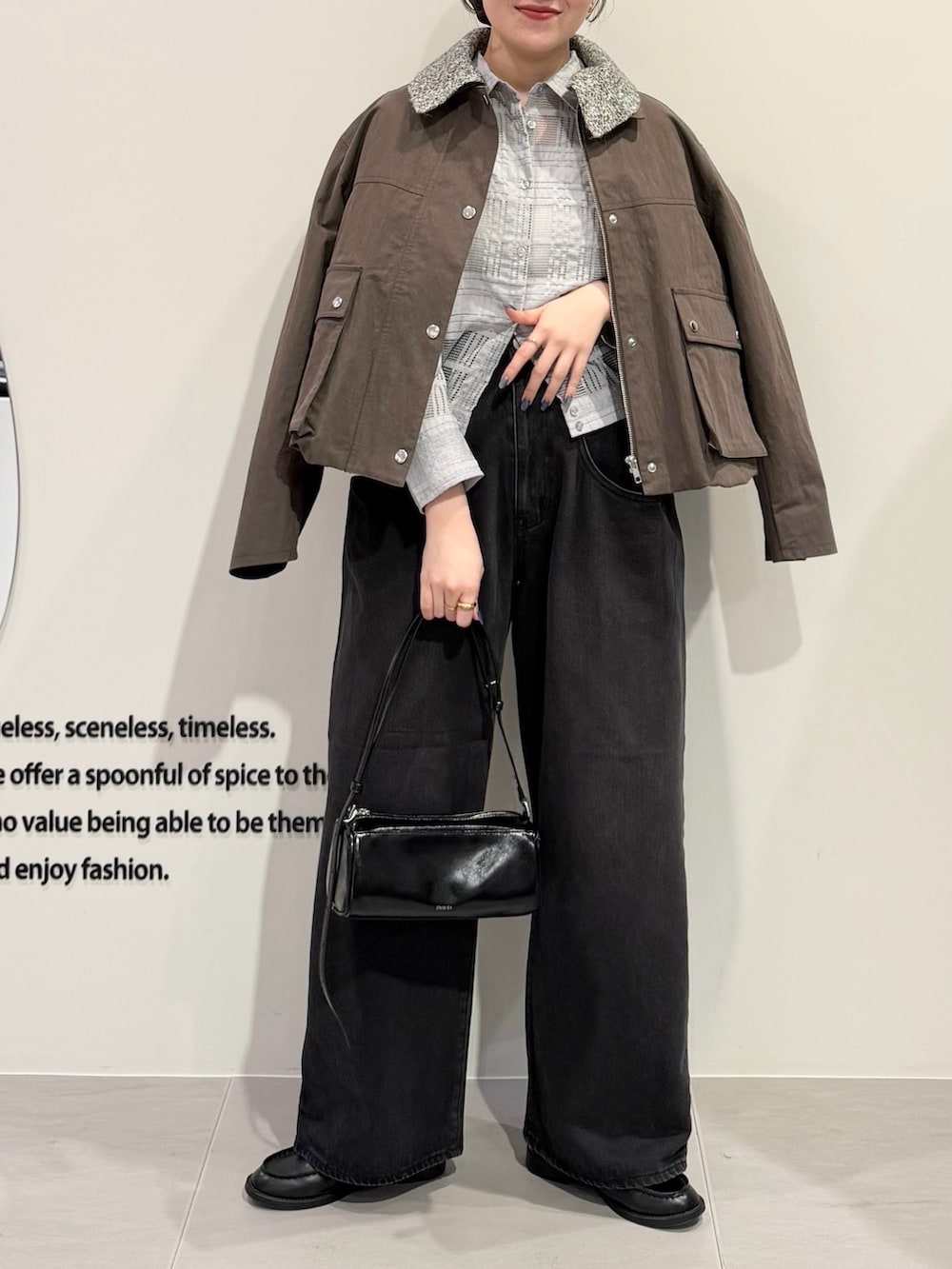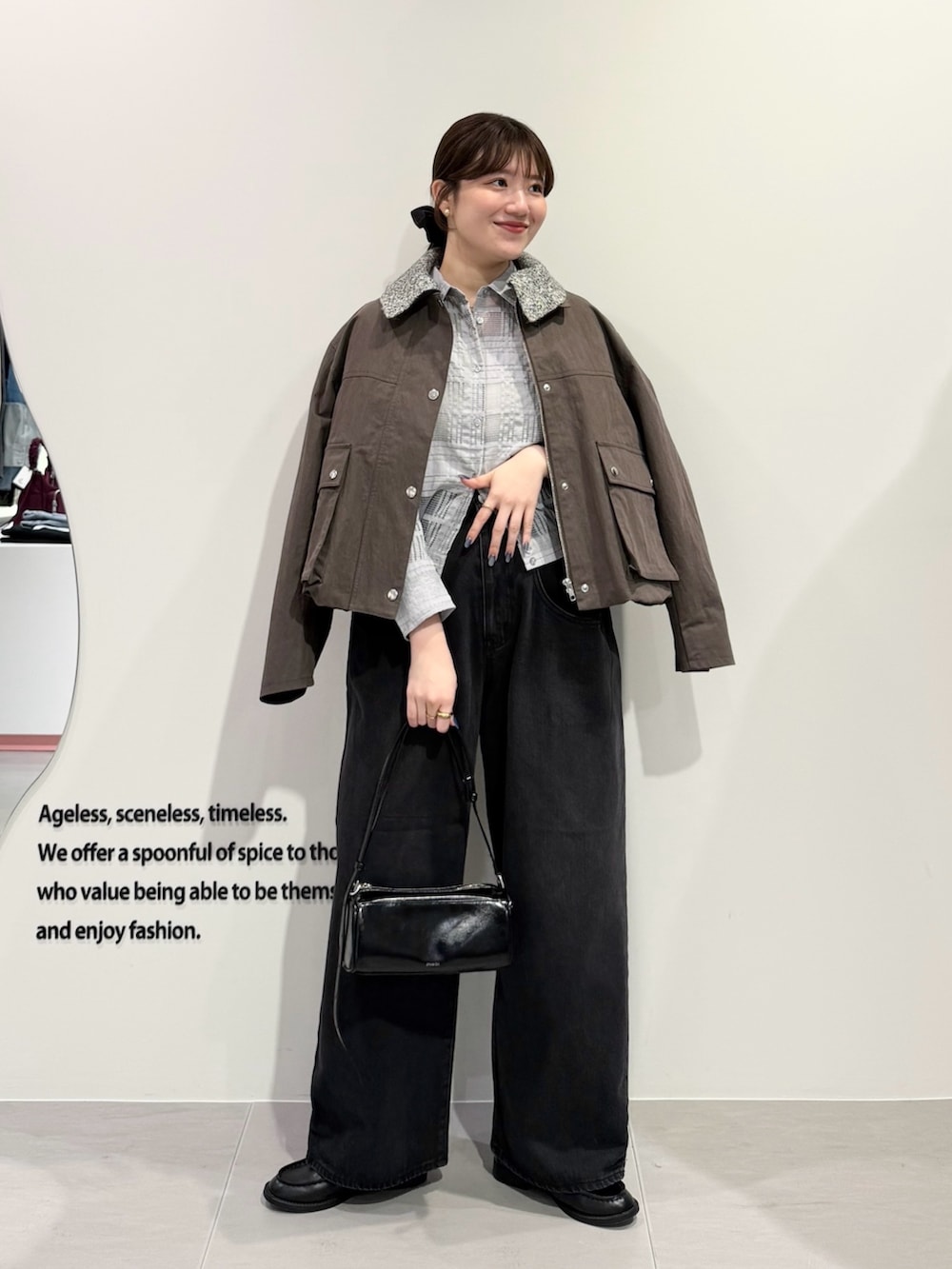 デニムはブラックでコーデを締めています♪