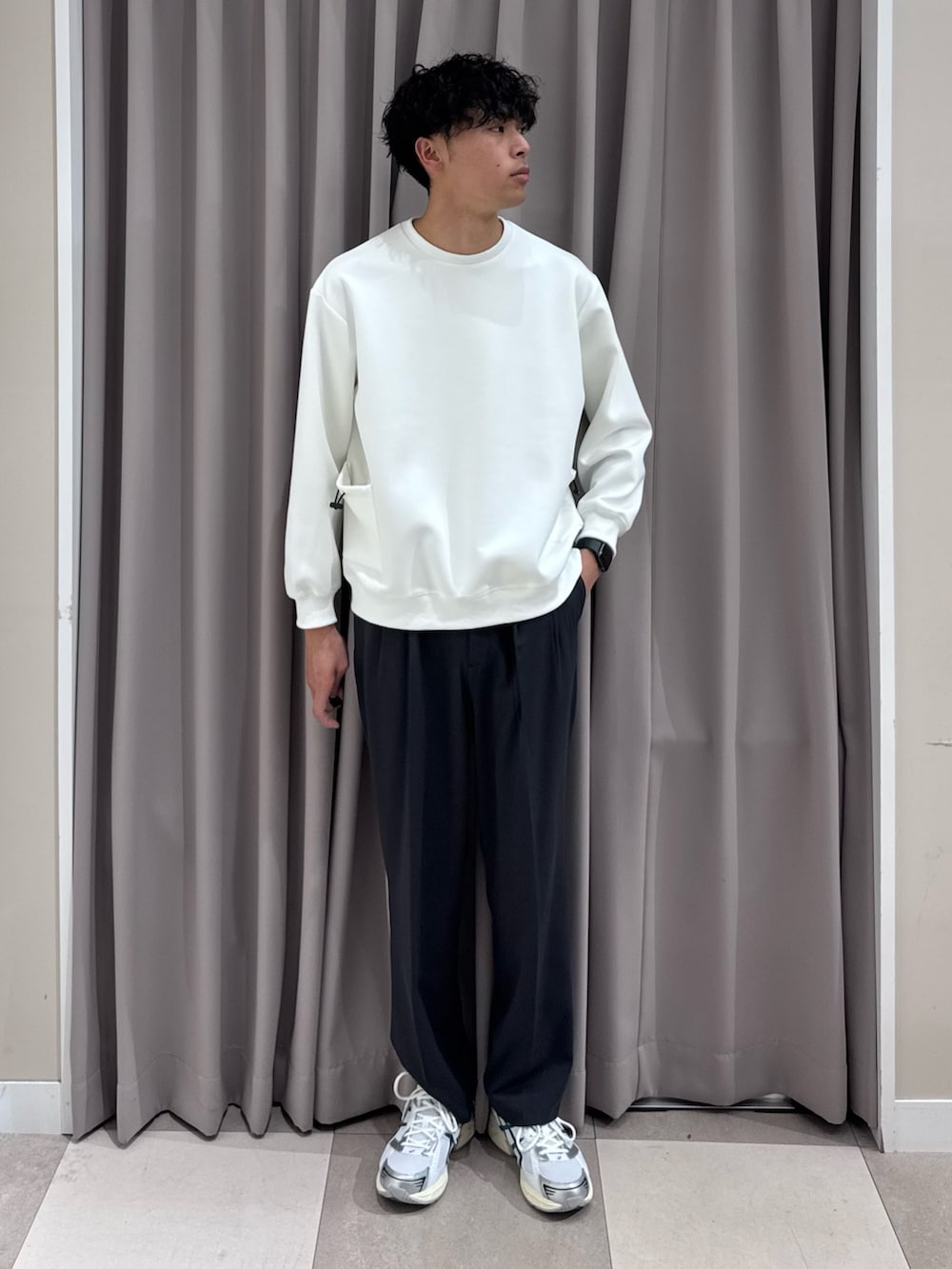 インナーのダンボールプルオーバーも肌触りの良く、オーバーサイズでストレッチもありと👍