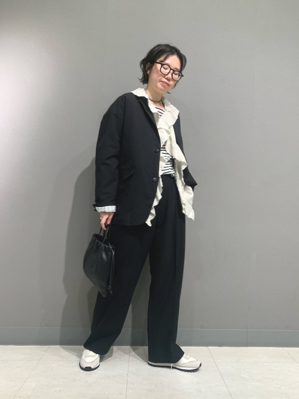 ストレッチの入った綺麗めなシルエットのパンツです。楽ちんさと綺麗さを兼ね備えているので一本あるとオンオフ関わらず重宝します。