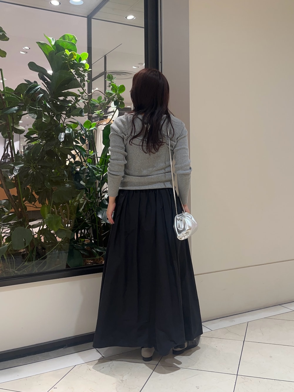 ボリュームスカートを私らしく甘くなりすぎないように合わせました!グレーのニットはとっても着心地が良いので、セットで着れるキャミを重ねてもゴワゴワしないです◎