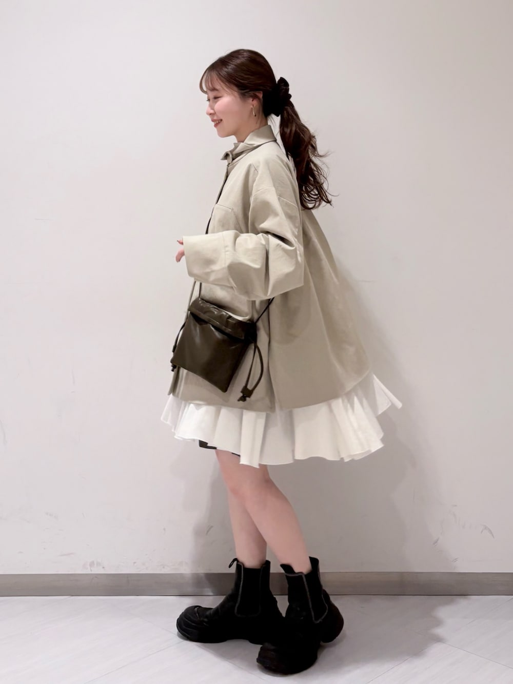サイドのチャックでを開けるとフレアなどのワンピースもそこからヒラヒラさせられて動きが出るのもいい、、✨