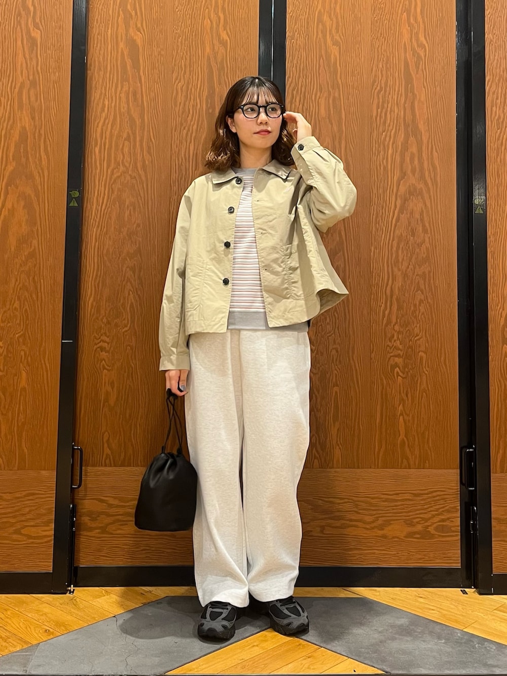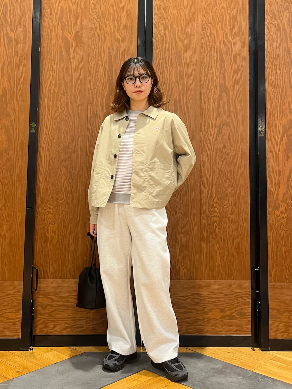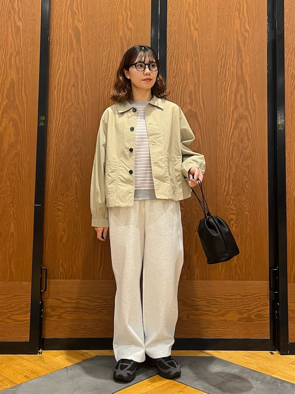 インナーにボーダーをいれて、スウェットパンツを合わせたラフなスタイルに!