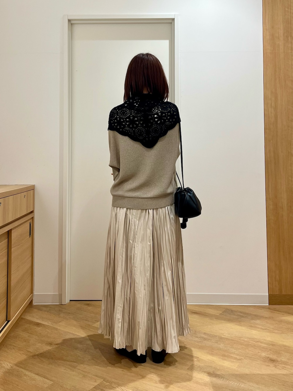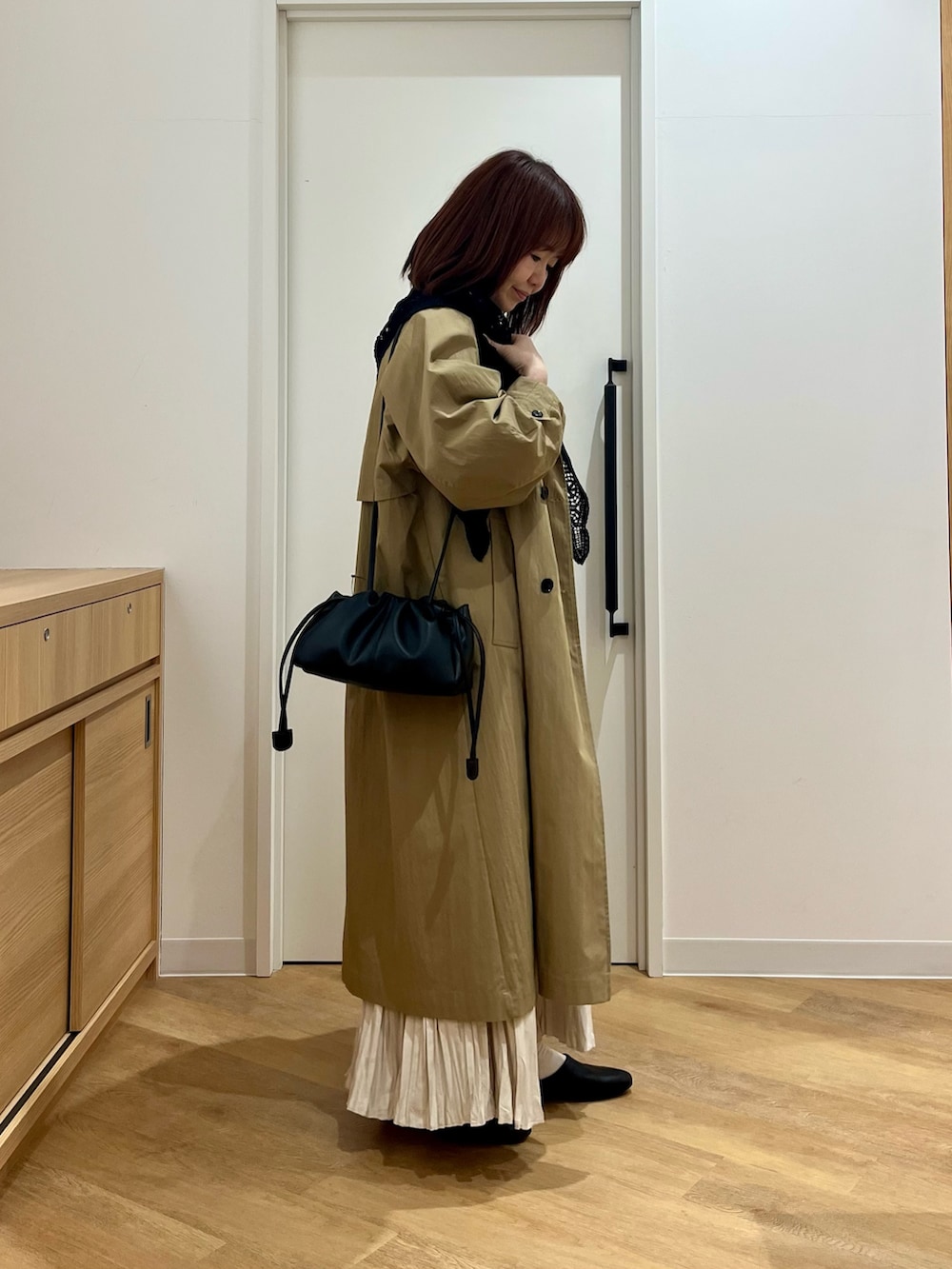 スカートはやや長めですが、159cmでもウエスト位置で紐を結べば気にならない丈感です。