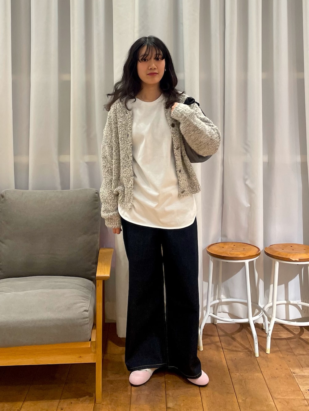 カラーが混じったメランジカーディガンが可愛いです!