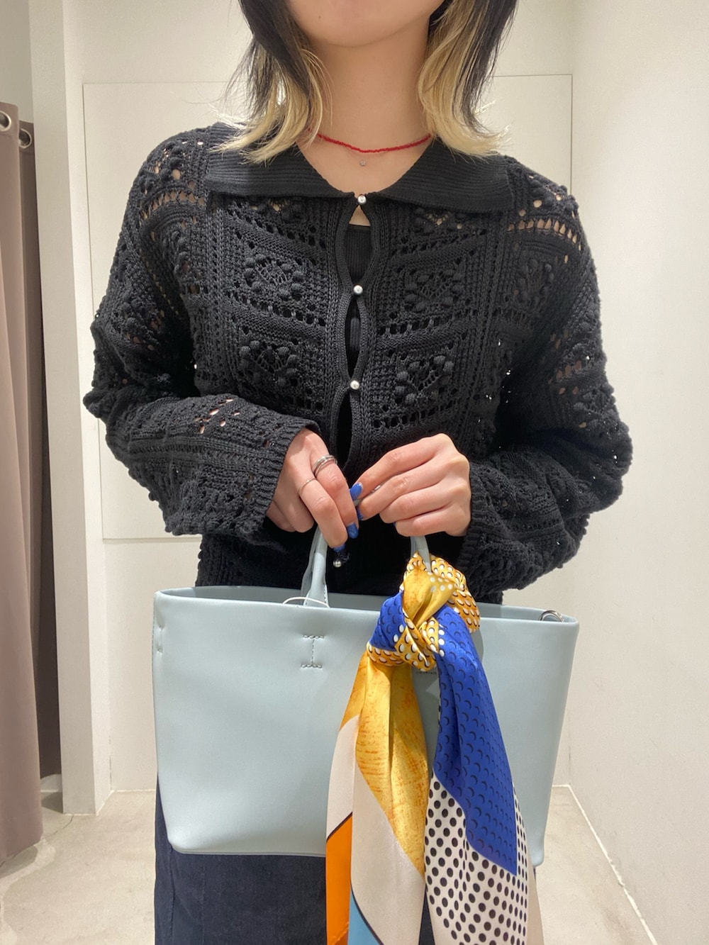今回合わせたレース模様のトップスは程よい透け感で、春らしい1着です!