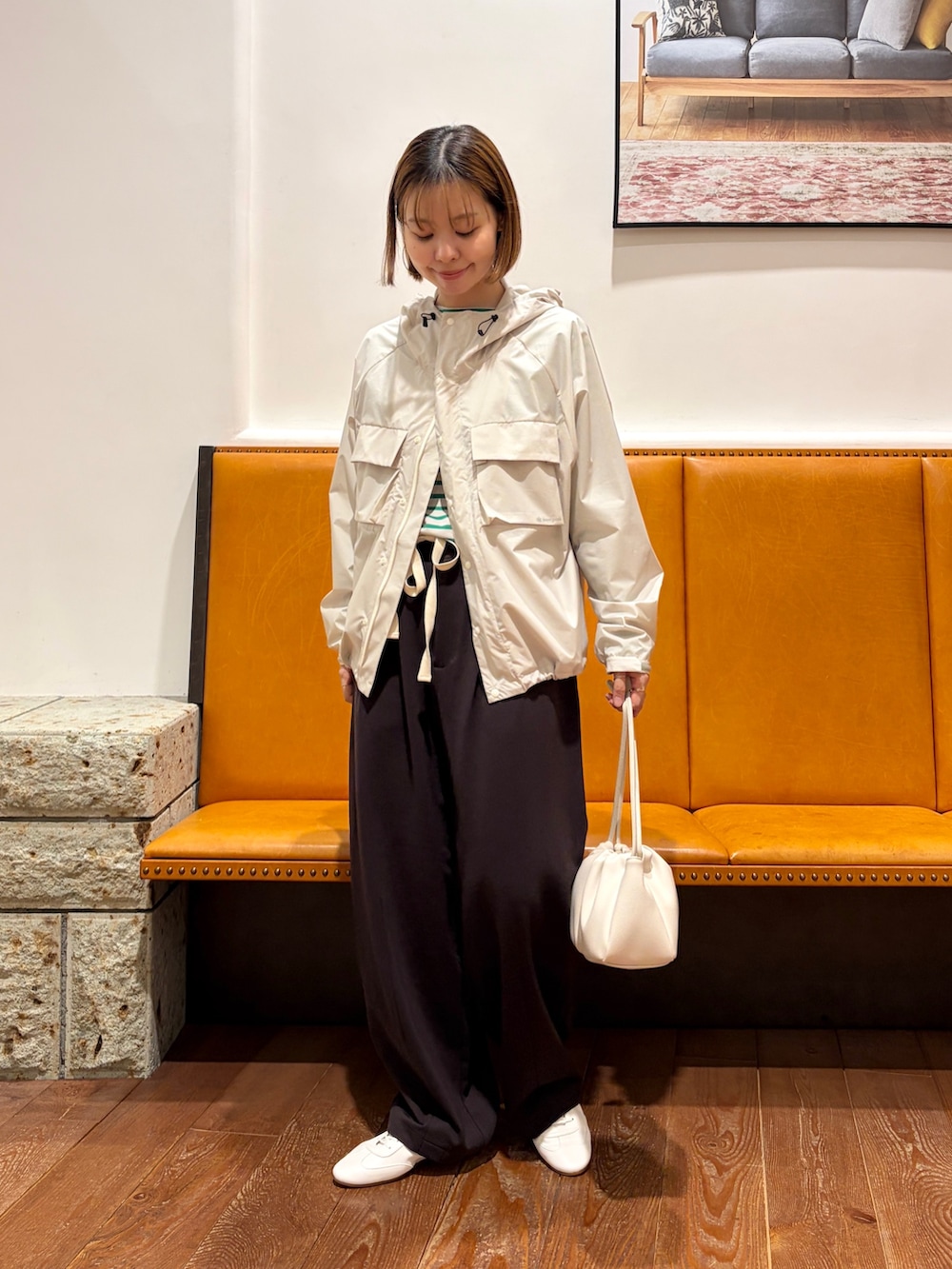 アウターは軽い着心地で、ダブルジップや裾のドロストでアレンジして着用して頂けます♪
