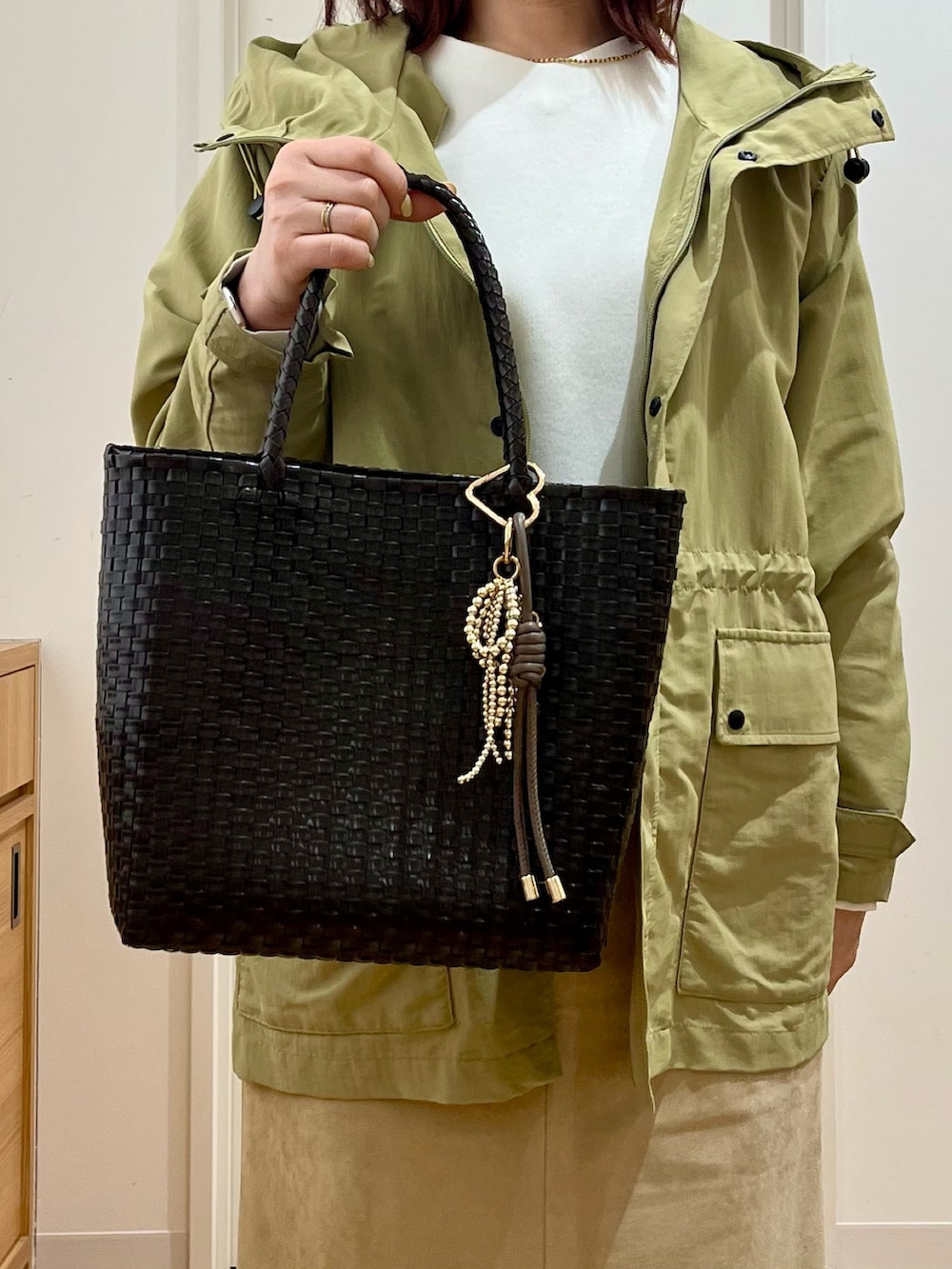 撥水加工が施されているので、軽い雨の日にも安心して着られる一枚。