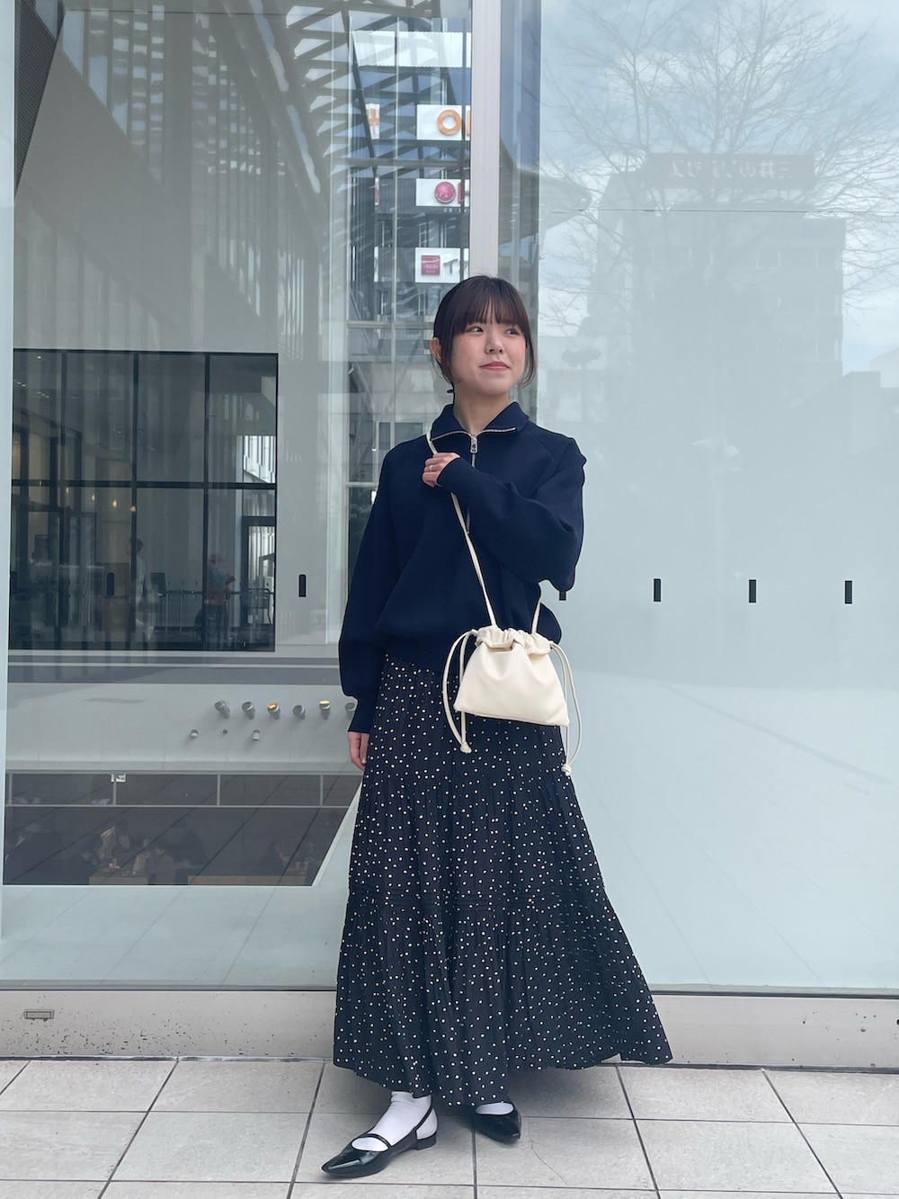 ちょっと甘めのドットのスカートにスウェットで馴染ませると大人かわいいコーデの完成です!!✨