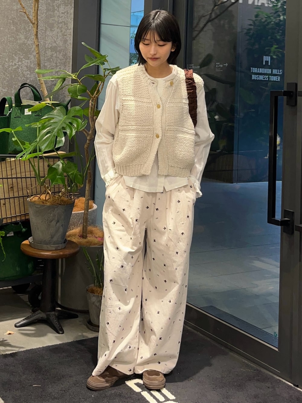 ツバメ刺繍イージーパンツ