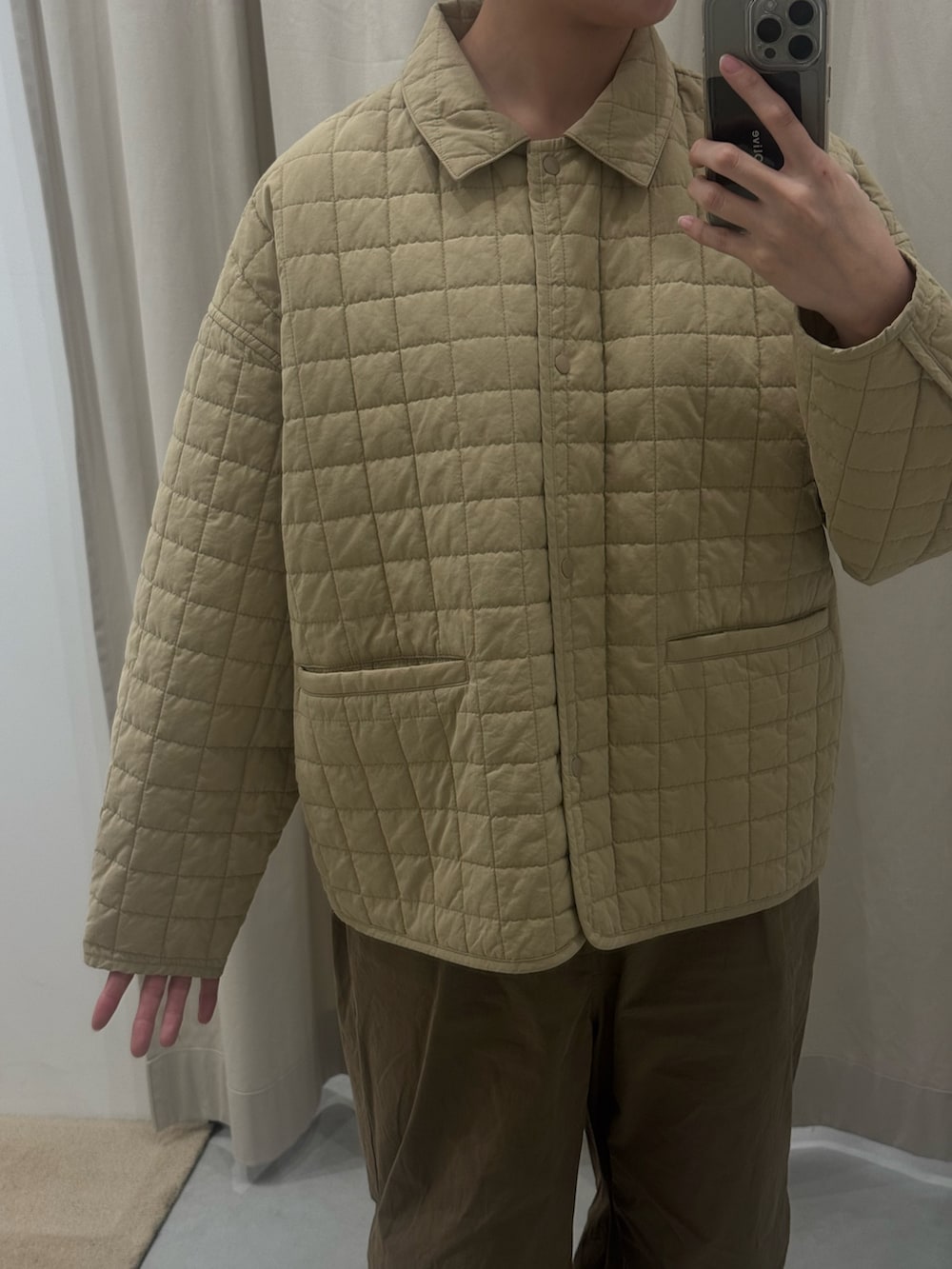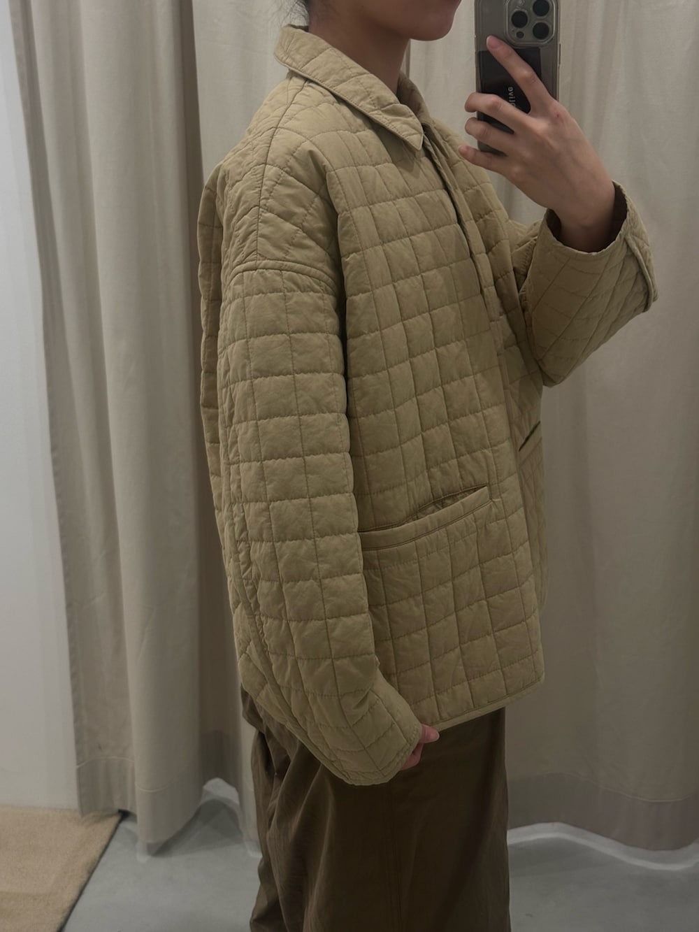 ダイヤ型のキルティングじゃなくワッフルみたいな正方形なので他の人とも被りにくいし、なにより形が可愛い〜ゆとりもあって今まだ寒い時期からでも着れますよ♩