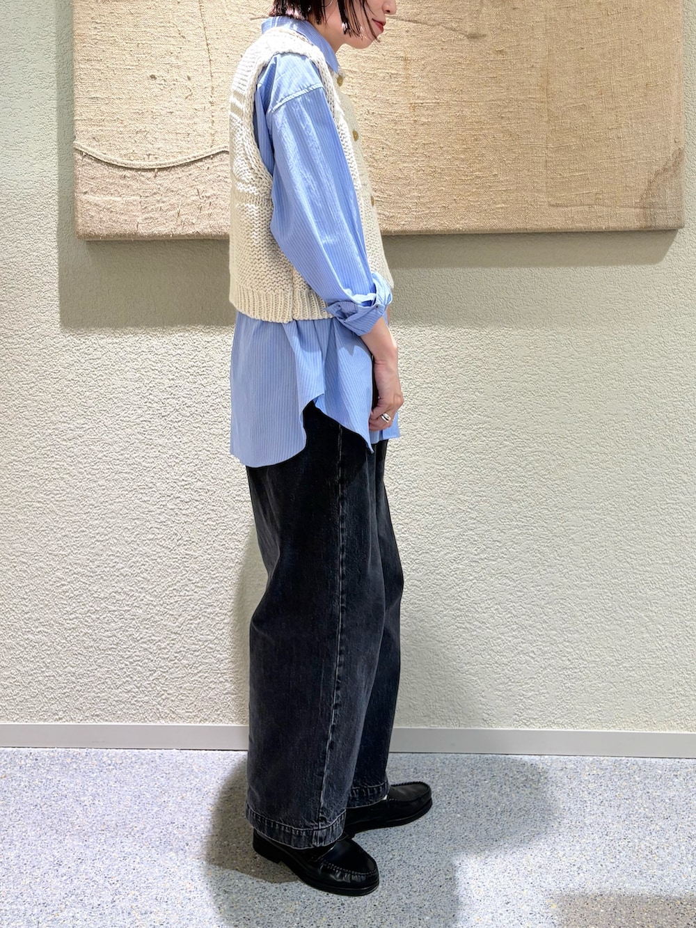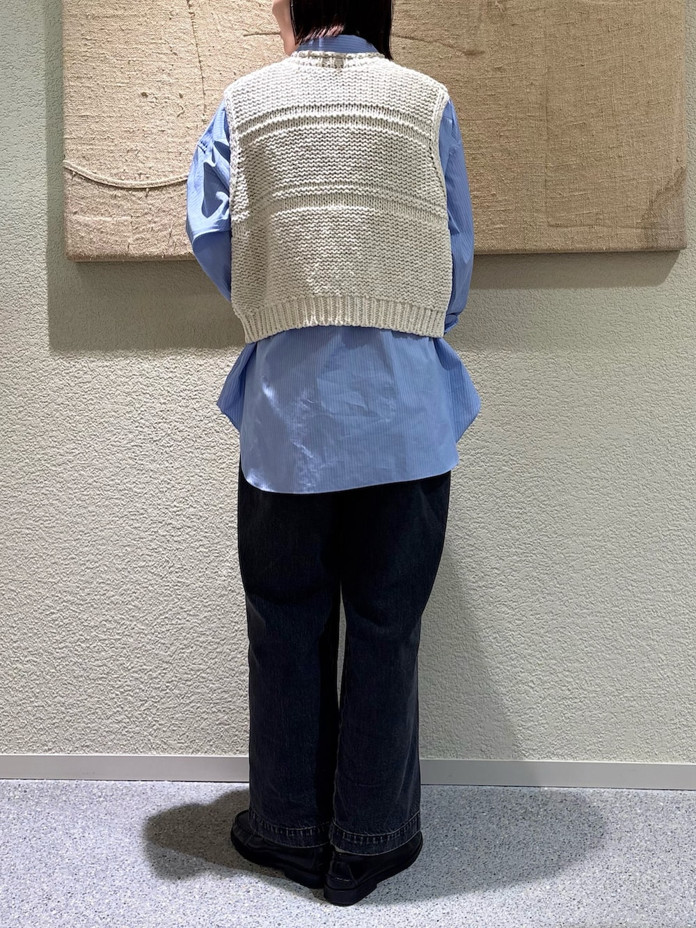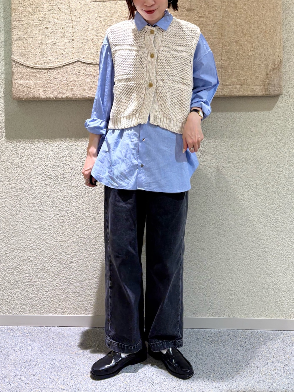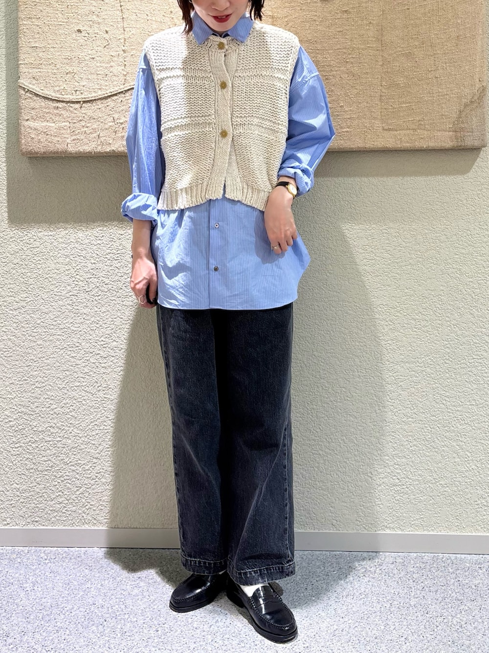 スッキリとした着丈なのでシャツなどとのレイヤードスタイルもオススメです。