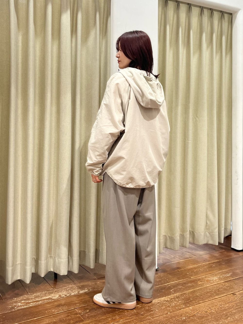 パンツはシルエットも綺麗でウエストがゴムになっているので履き心地も楽で着回しも抜群です!