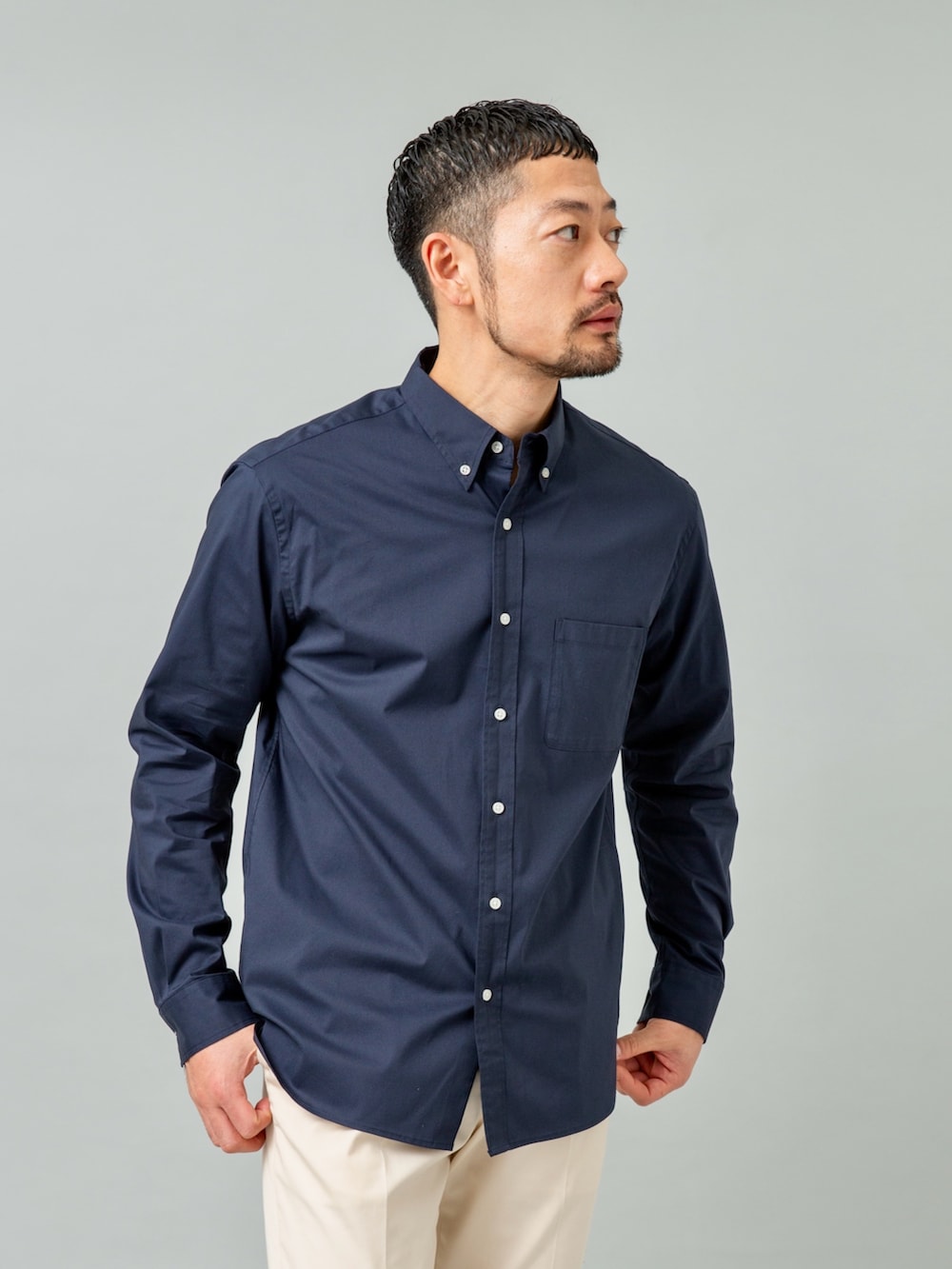 イージーケアの快適素材にベーシックデザイン、あらゆる場面で使える汎用性の高い1枚。