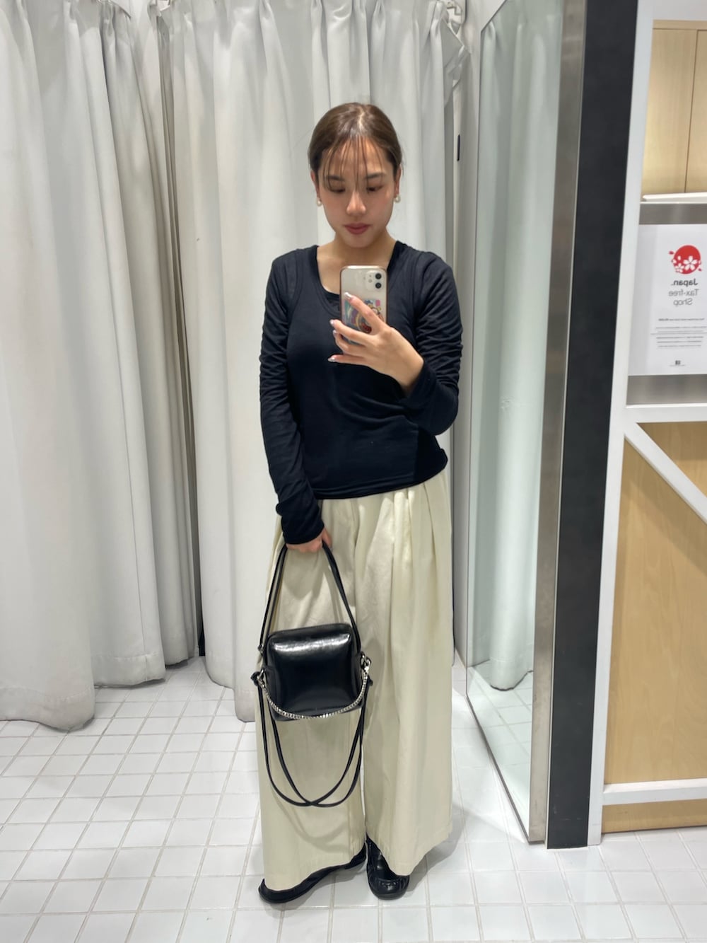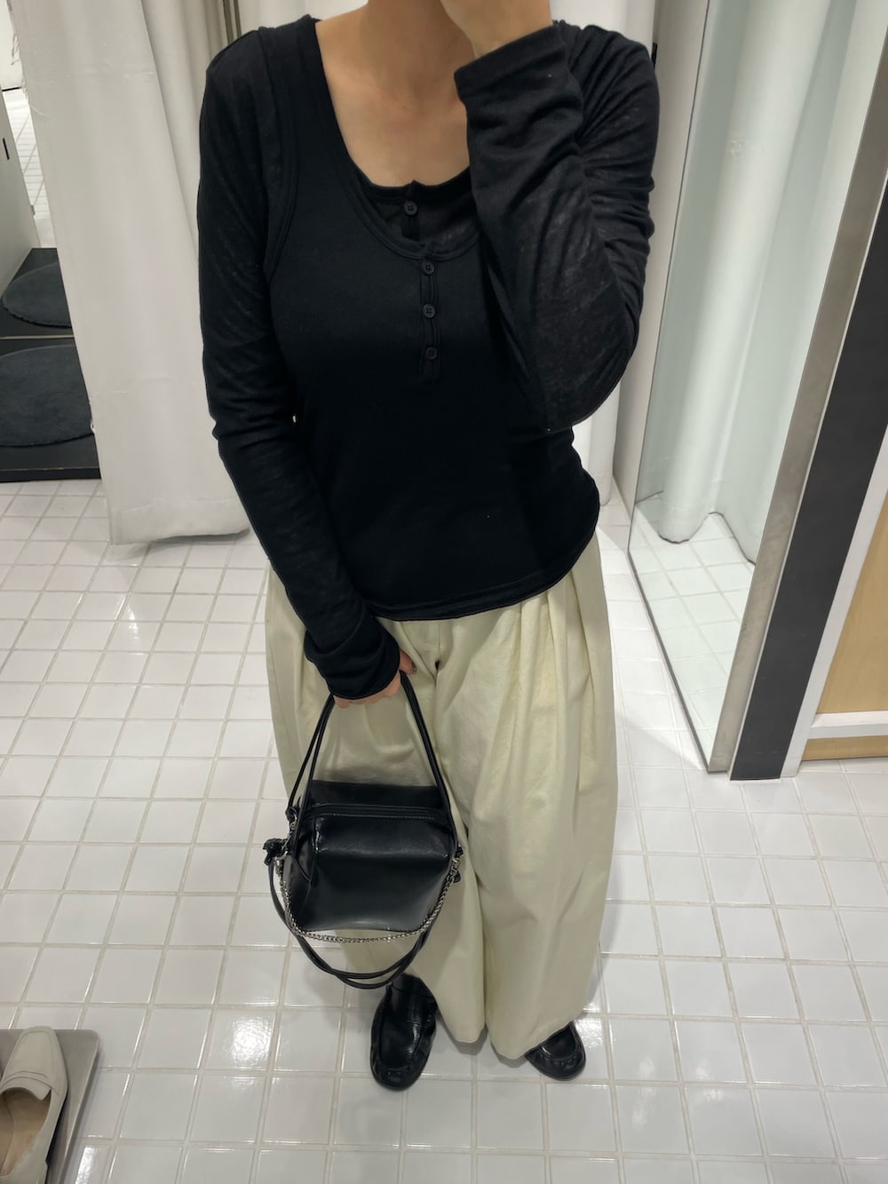 ボトムスはワイドながらも腰回りのラインがすらっとみせてくれるので、ぴたっとめなトップスとの相性ばっちりです👌🏻✨