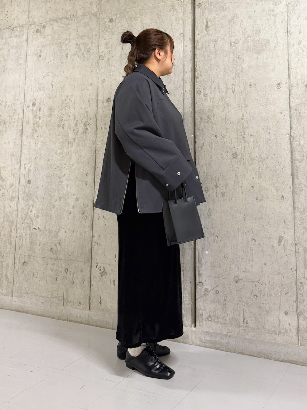アウターはオーバーサイズで、お尻まで隠れる丈感で着やすくておすすめです!