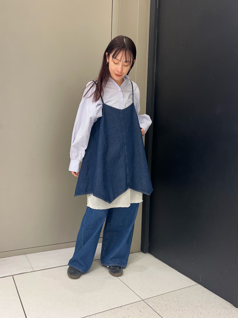 メッシュレイヤードデニムキャミワンピース