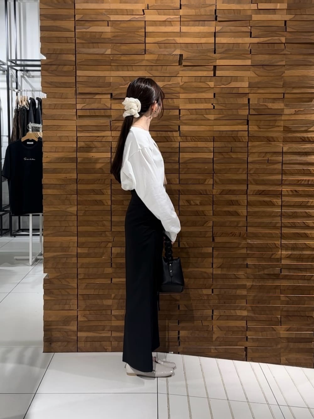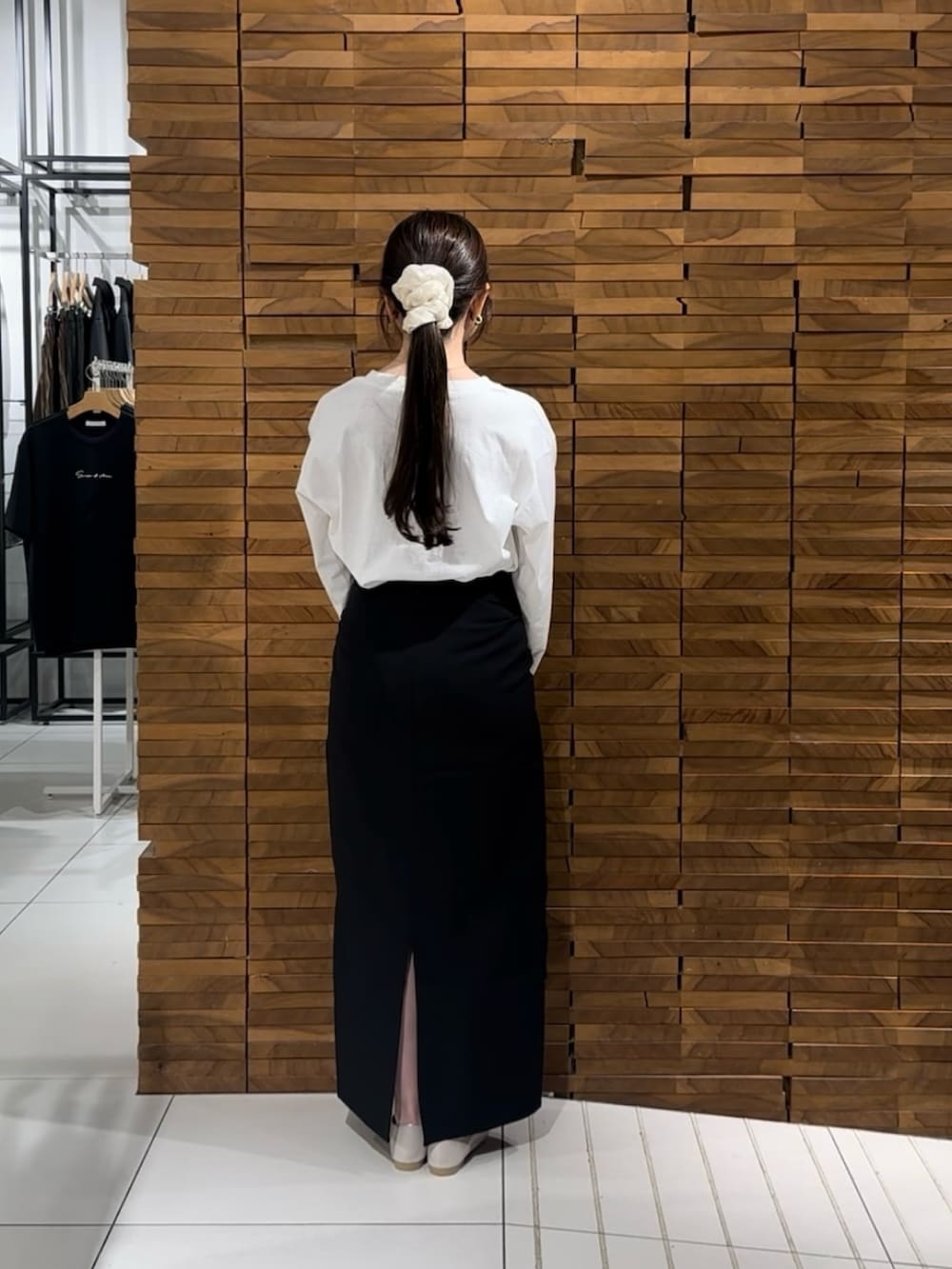 シャーリングスカートはハイウエストですが、腰回りがゆったりしていて履きやすいです◎