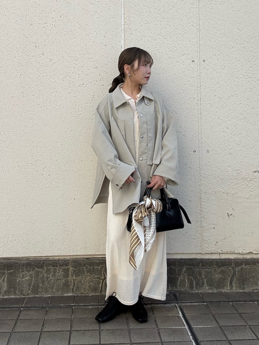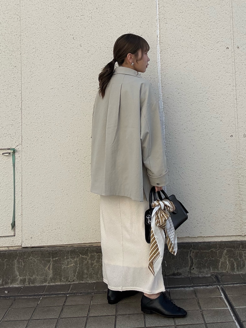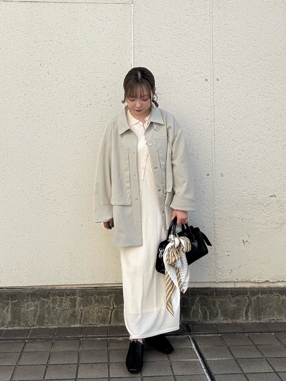 ニットスカートは丈が長めになっているので、胸位置まで上げてワンピース風にしてみました!
