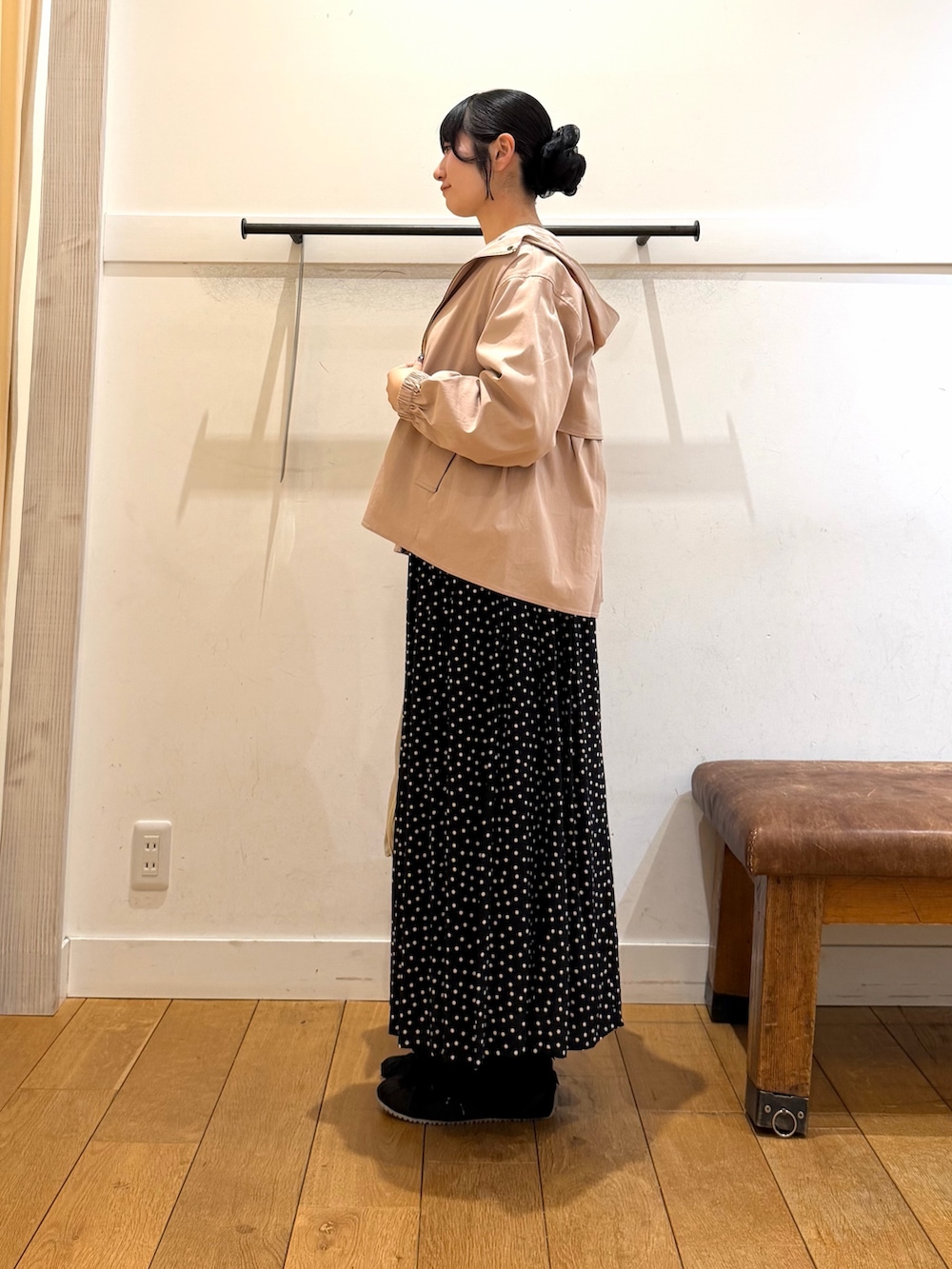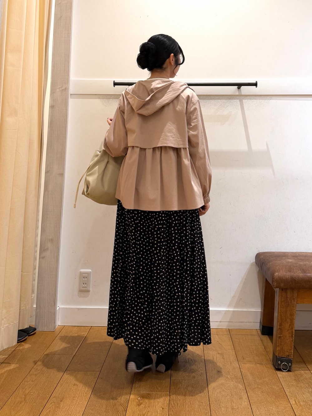 アウターのバックギャザーは、スカートとも相性抜群です!