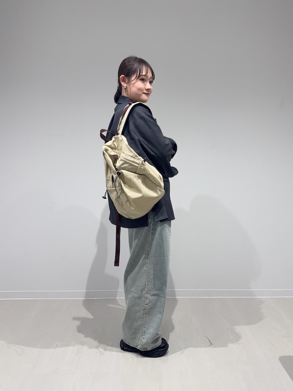 ゆるっと合わせたかったのでパンツも少し大きめの36を履きました!ベルトでウエストのサイズ調節可能なので、好きなところでしっかり止めてあげると長さも調節できます!