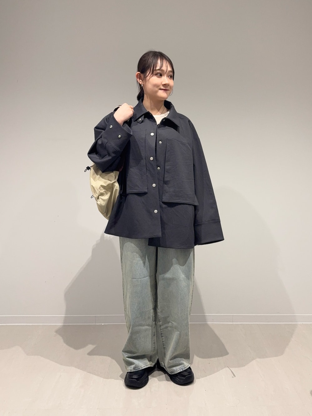 ゆるっとオーバーサイズなのが可愛いジャケット♪中も着込んでいただけるので少し肌寒さが残る今の時期から春先まで長く使えます!